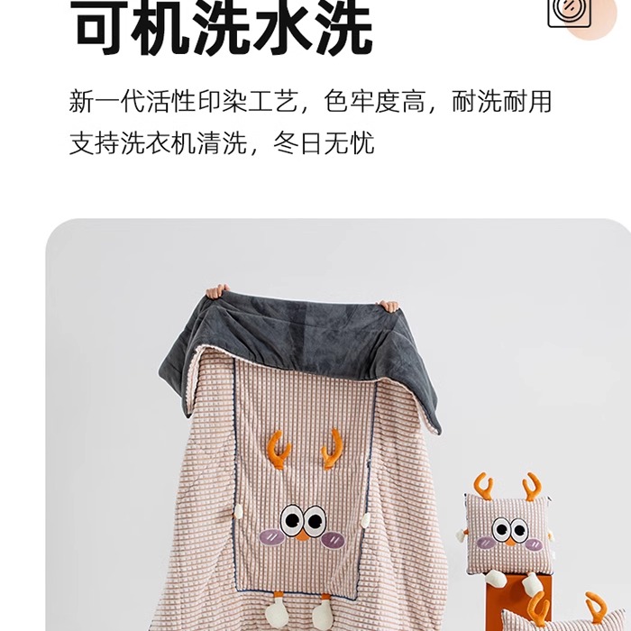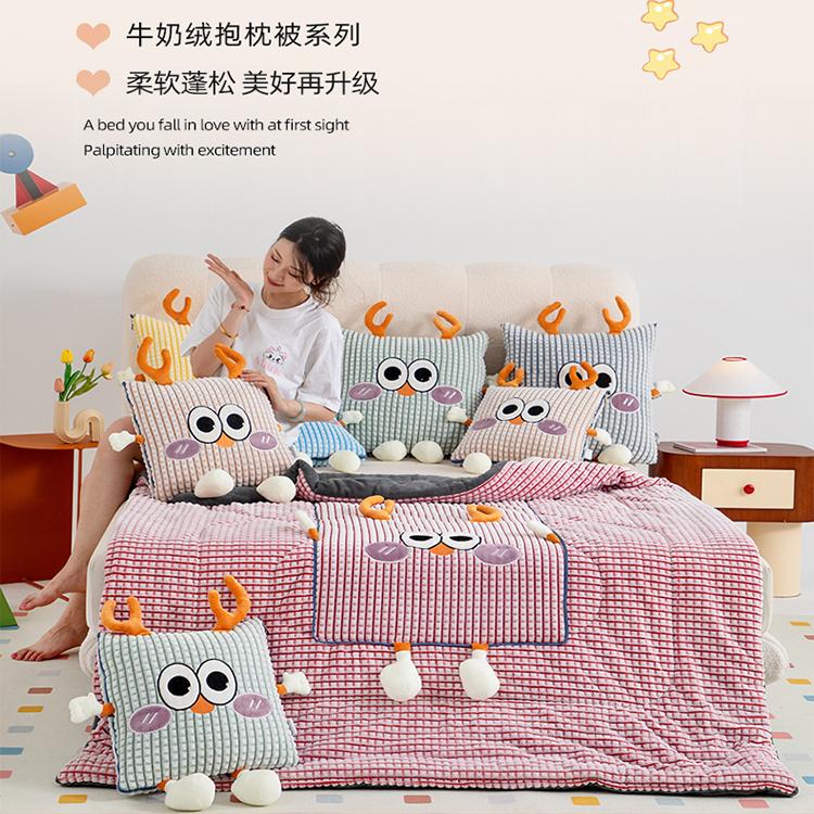 卡通可爱抱枕被子两用高克牛奶绒靠枕被子车载午休靠垫被子学生被