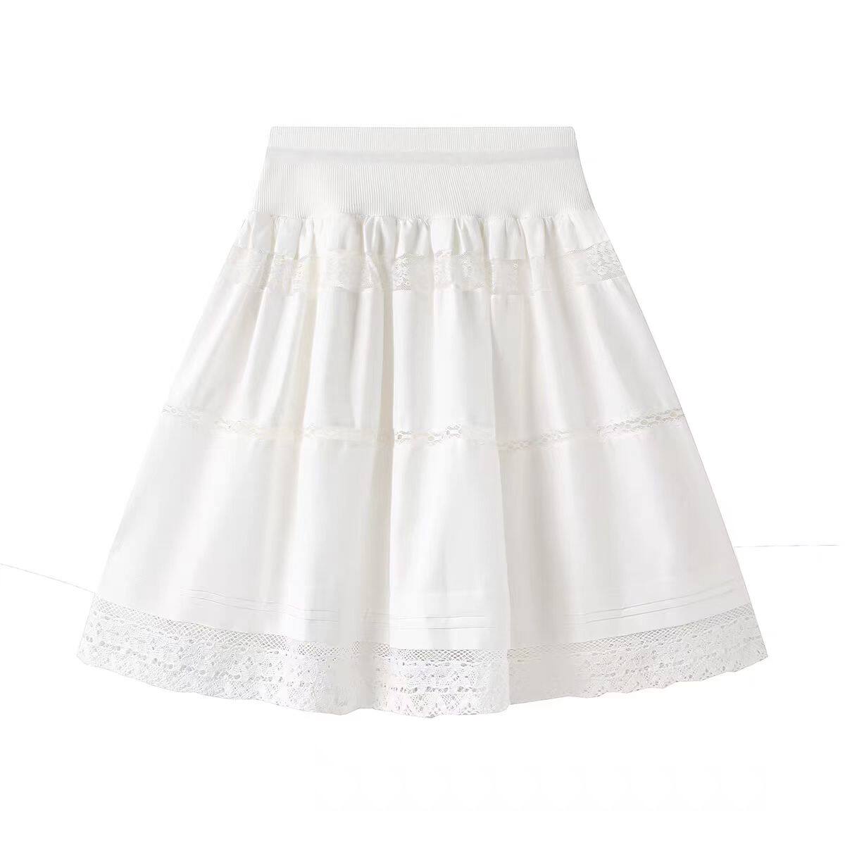 白色蕾丝拼接A字半身裙女