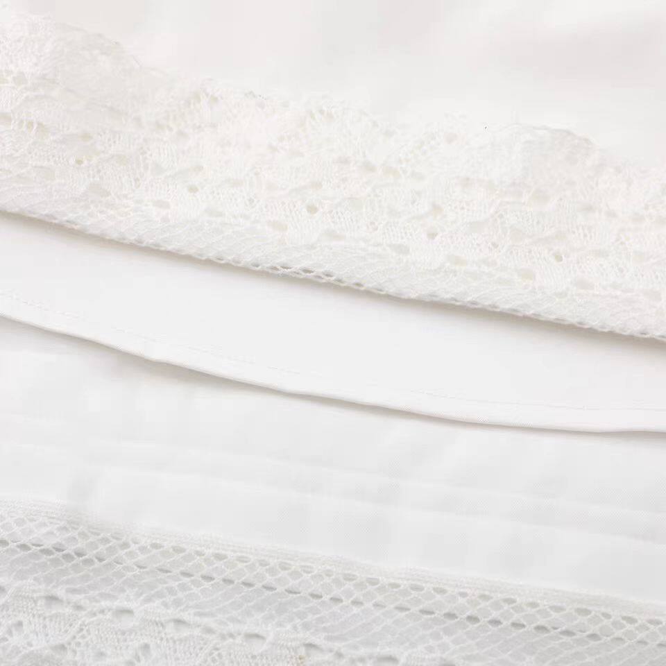 DN高端定制甜美风白色蕾丝拼接A字半身裙女松紧腰系带百搭短裙