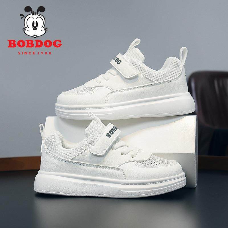 巴布豆儿童小白鞋男童白色运动鞋2025新款网面休闲女童白色板鞋子