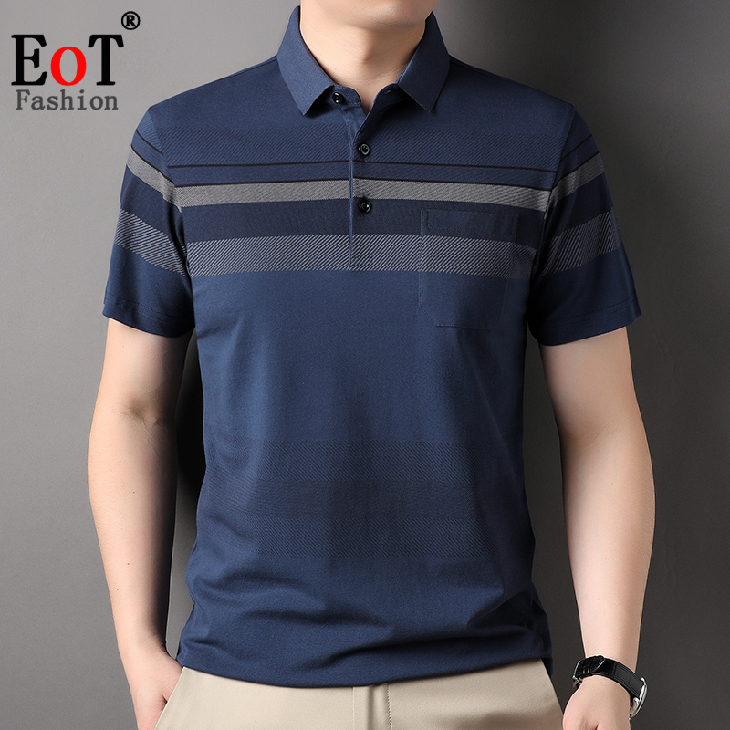 纯棉有口袋夏季新款男士短袖T恤中年翻领宽松休闲爸爸装全棉半袖