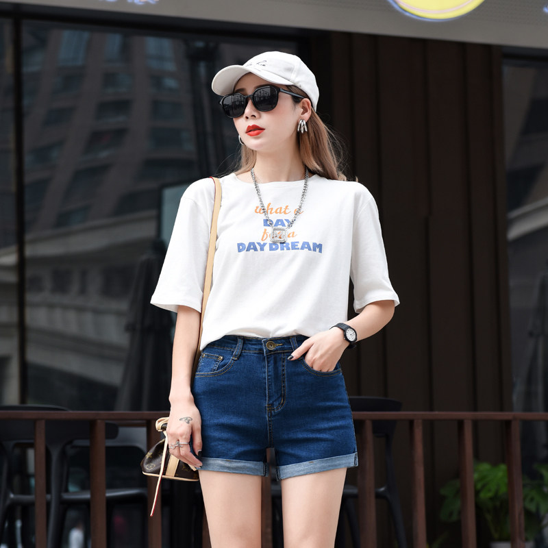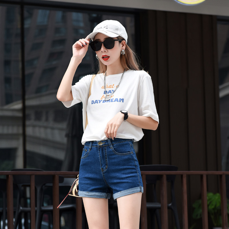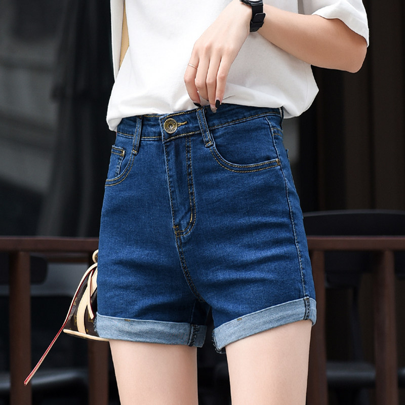 牛仔短裤女夏季2025年新款高腰薄款裤子女裤夏天弹力直筒卷边热裤