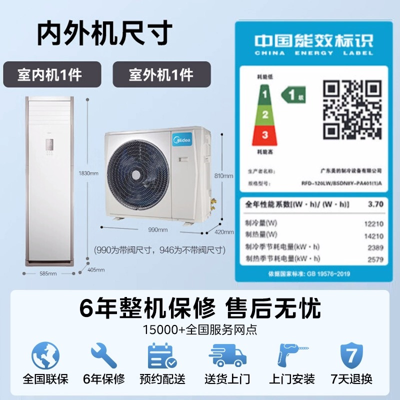 美的中央空调5匹立式柜机一级能效冷暖变频家用商用大客厅冷静星