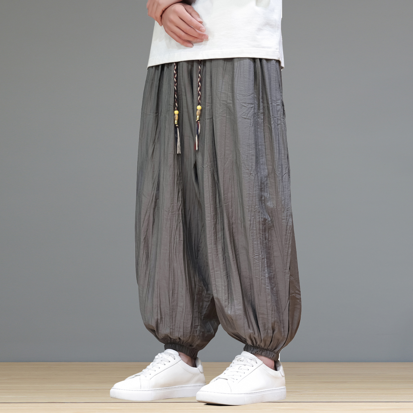 2025夏季冰丝裤子男灯笼裤薄款透气休闲九分裤中国风宽松阔腿裤