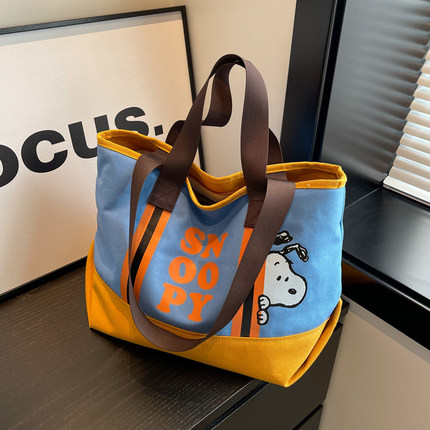 日系史努比帆布包女卡通可爱手提袋大容量学生补课单肩妈咪托特包