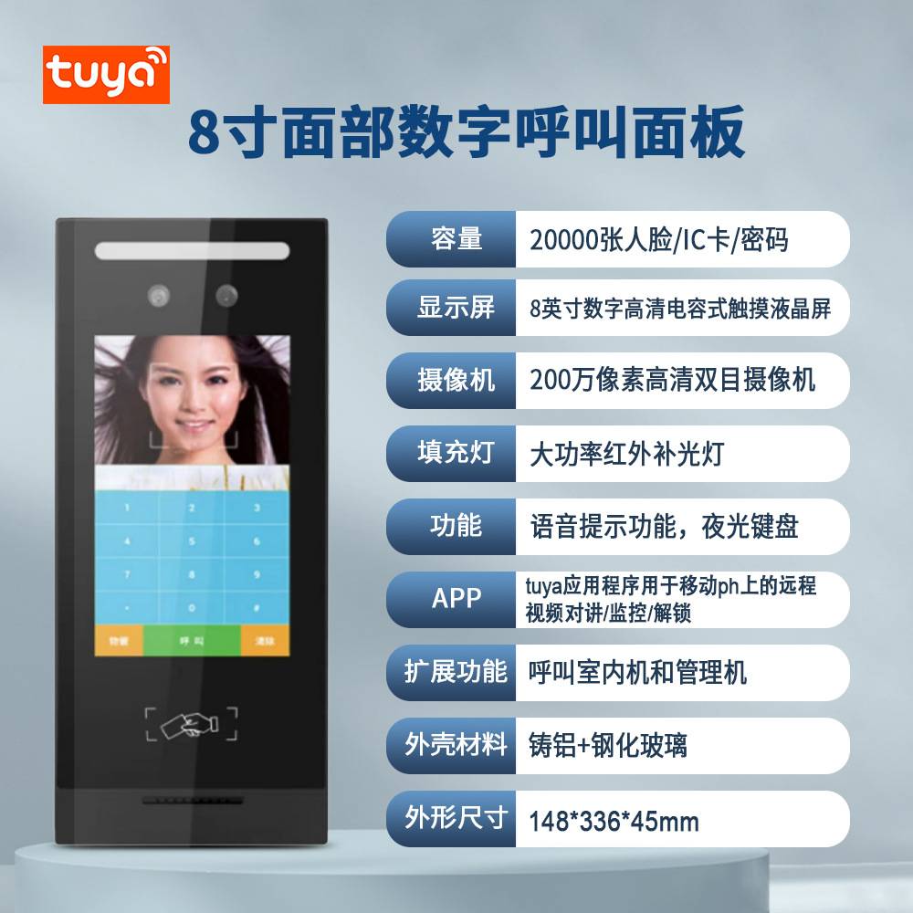 海宝城人脸识别数字楼宇可视对讲门禁系统8寸液晶显示屏门口主机