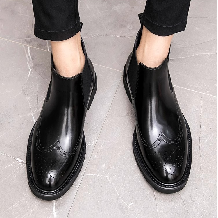 切尔西靴软皮英伦高帮商务皮鞋布洛克雕花休闲短靴皮靴冬季男高帮