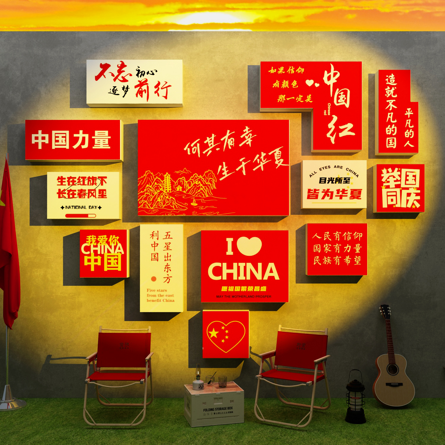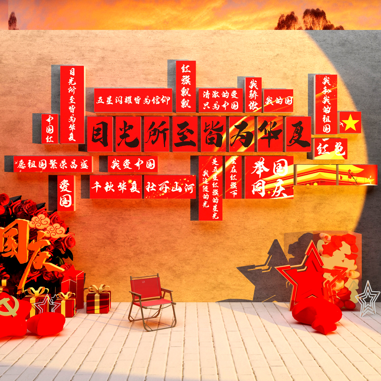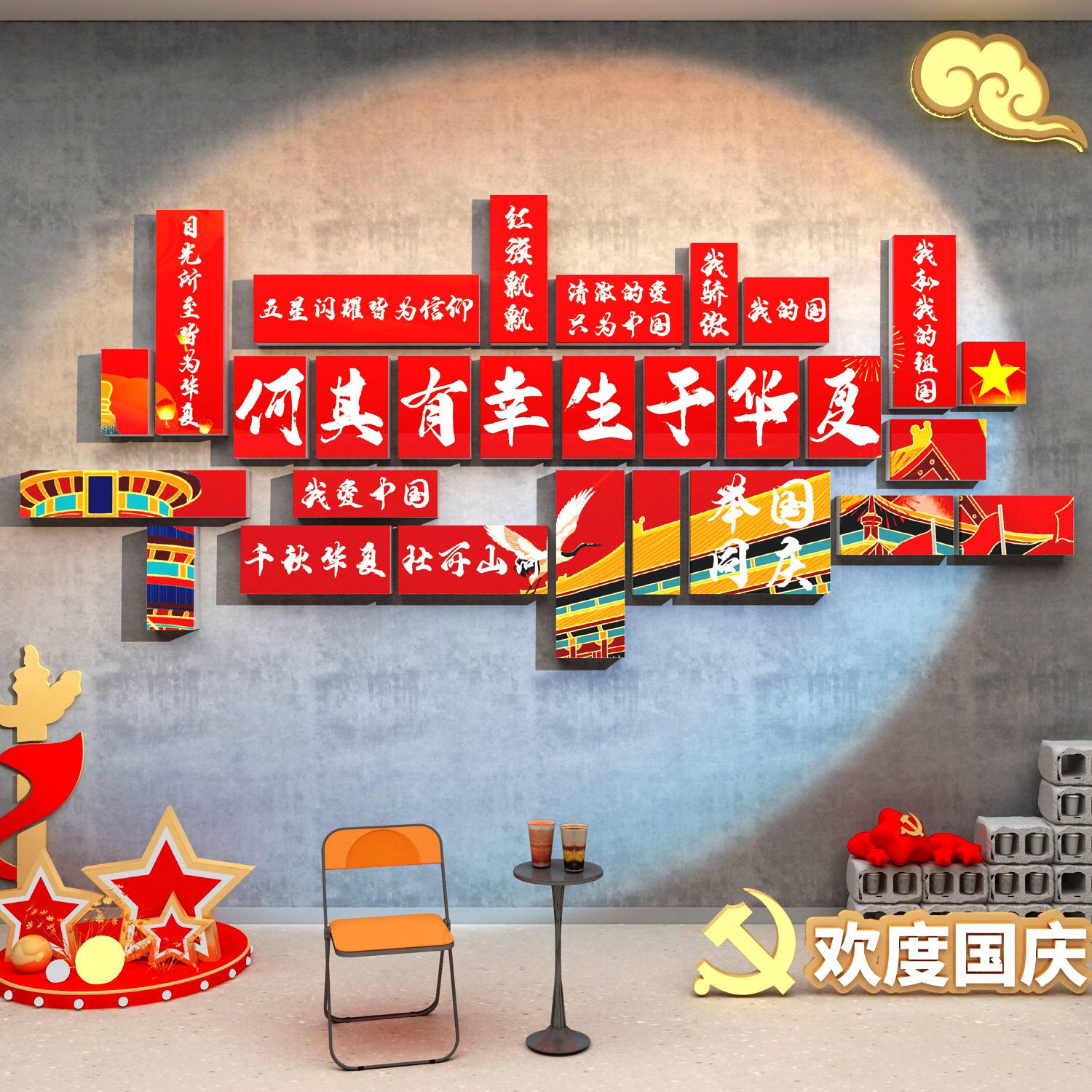 爱国庆节氛围装饰布置主义题墙面贴纸红色文化党建宣传栏环创背景