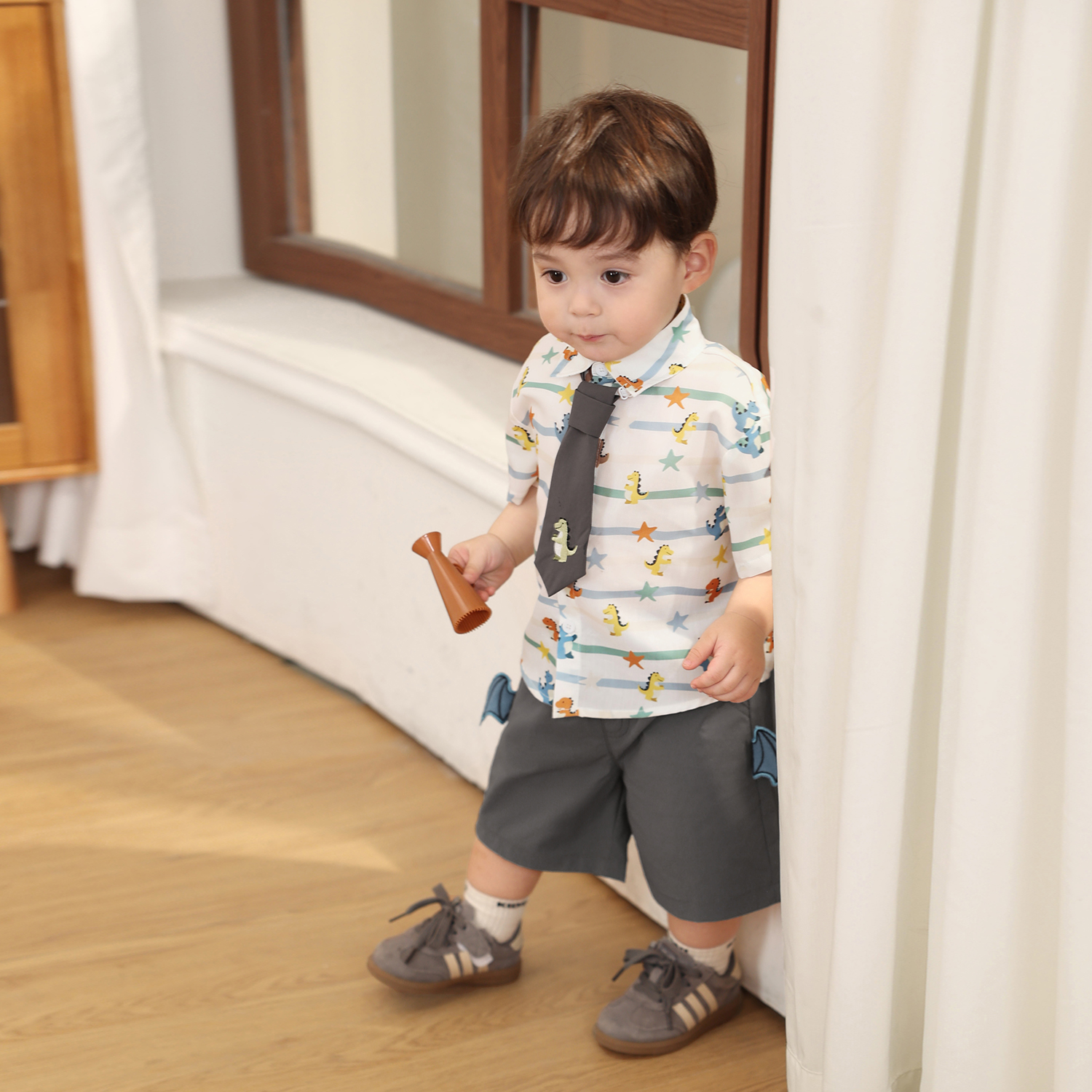 小O爸男婴童 宝宝短袖套装夏季2025年新款学院风衬衫短裤婴儿夏装