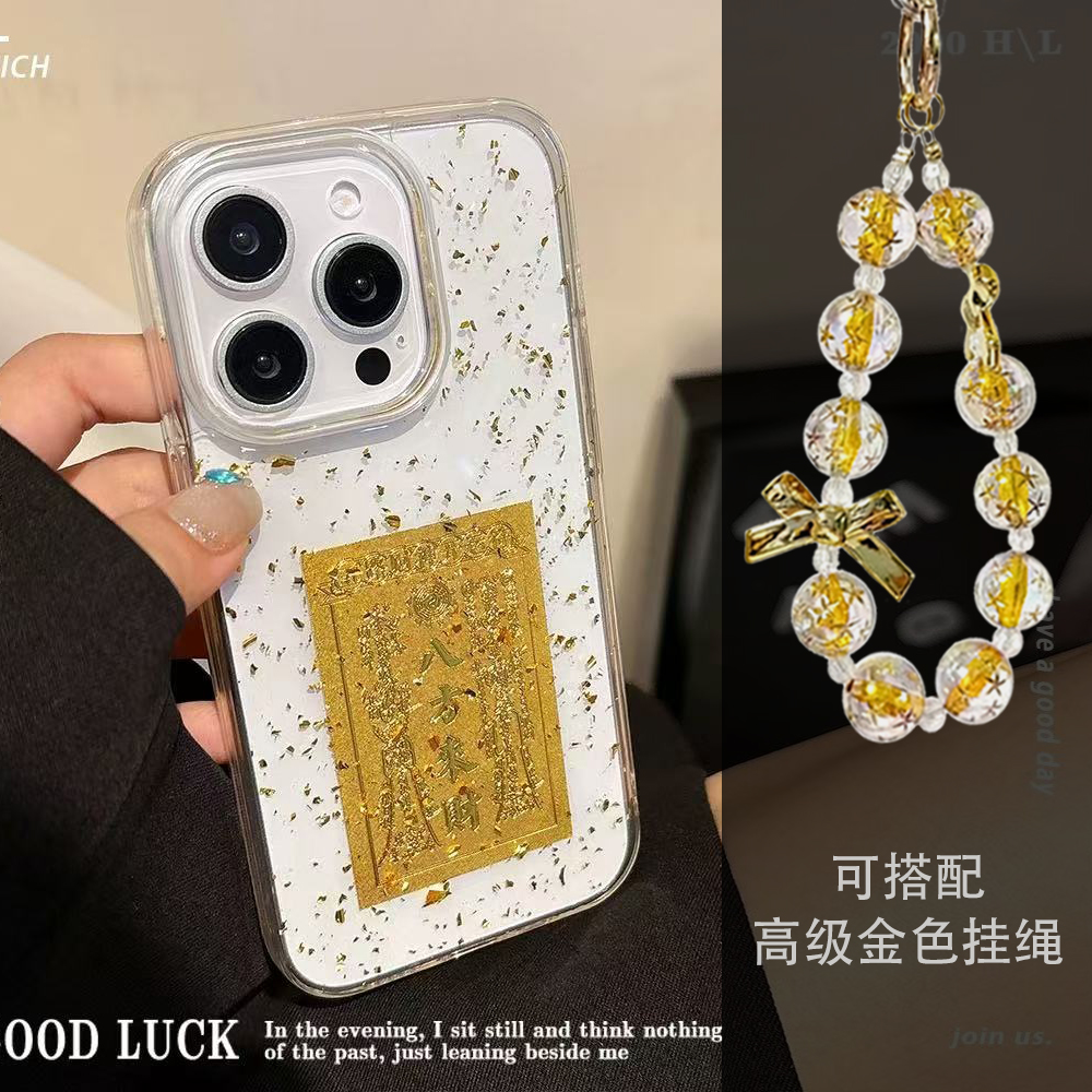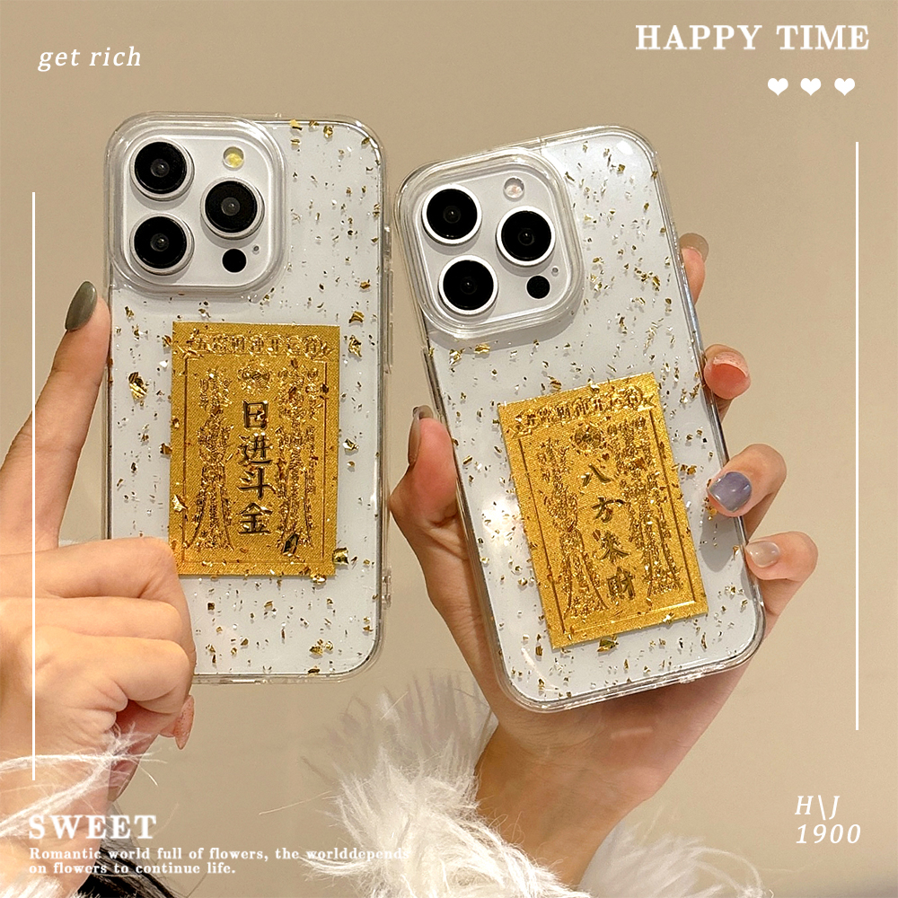 透明滴胶金箔适用苹果16PROMAX八方来财手机壳iphone13/14亚克力保护套