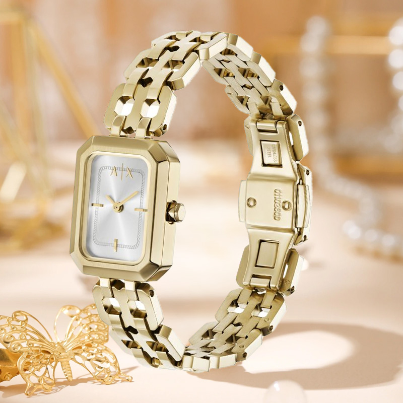 Armani Exchange 2025新款轻奢钢带女士手表女学生时尚方形AX5811