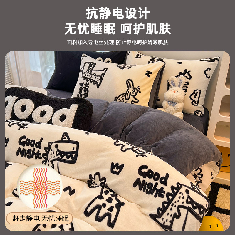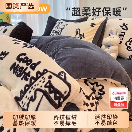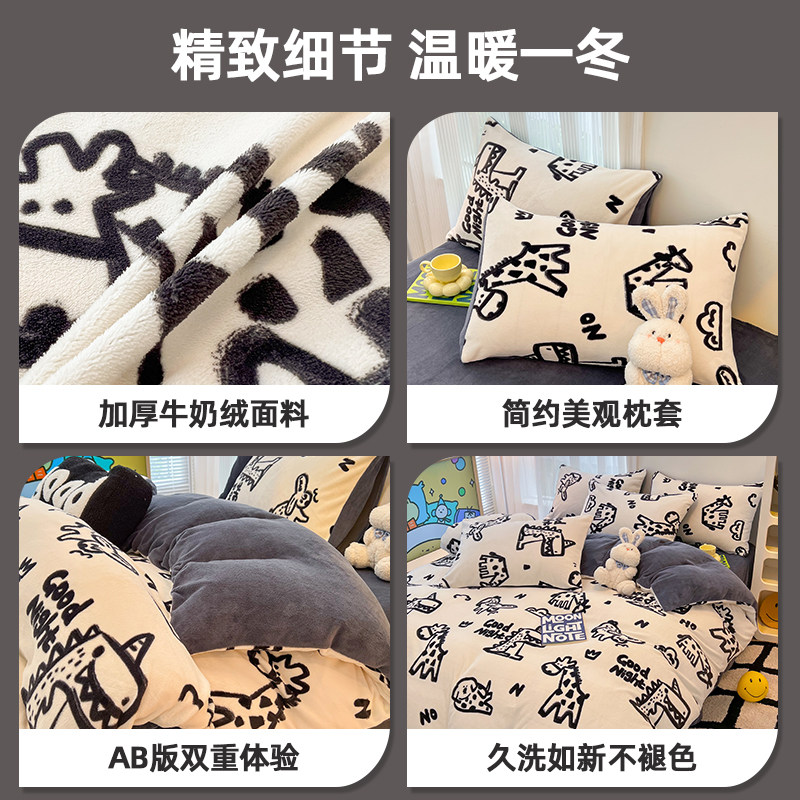 猫人牛奶绒四件套秋冬加绒加厚冬季被套珊瑚绒宿舍绒面床上三件套