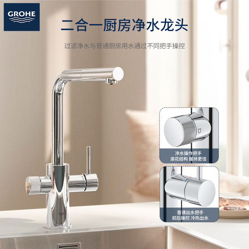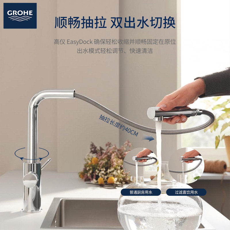 高仪(GROHE)进口厨房净水器可抽拉冷热二合一水槽龙头 30590000
