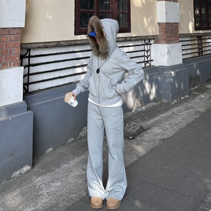高腰宽松阔腿裤抽绳直筒拖地裤