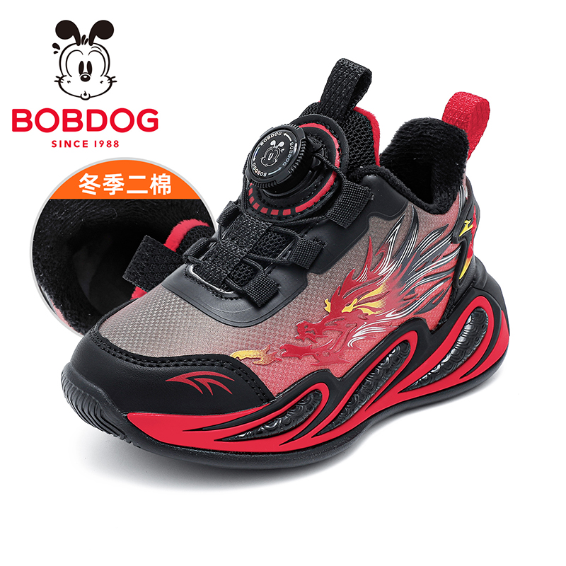 巴布豆童鞋男童鞋加棉2025新款冬季男孩加绒二棉鞋加厚男童运动鞋