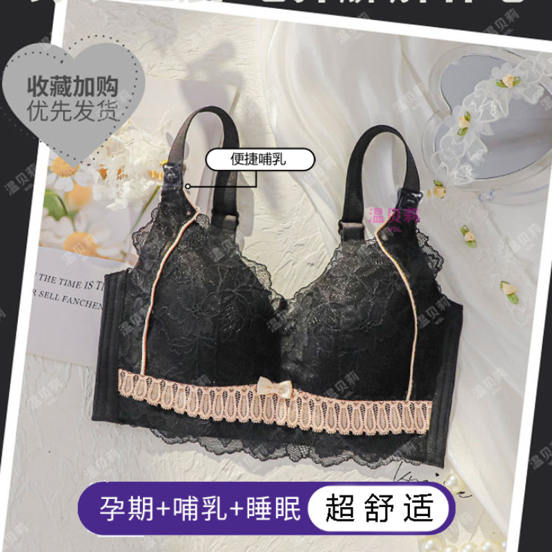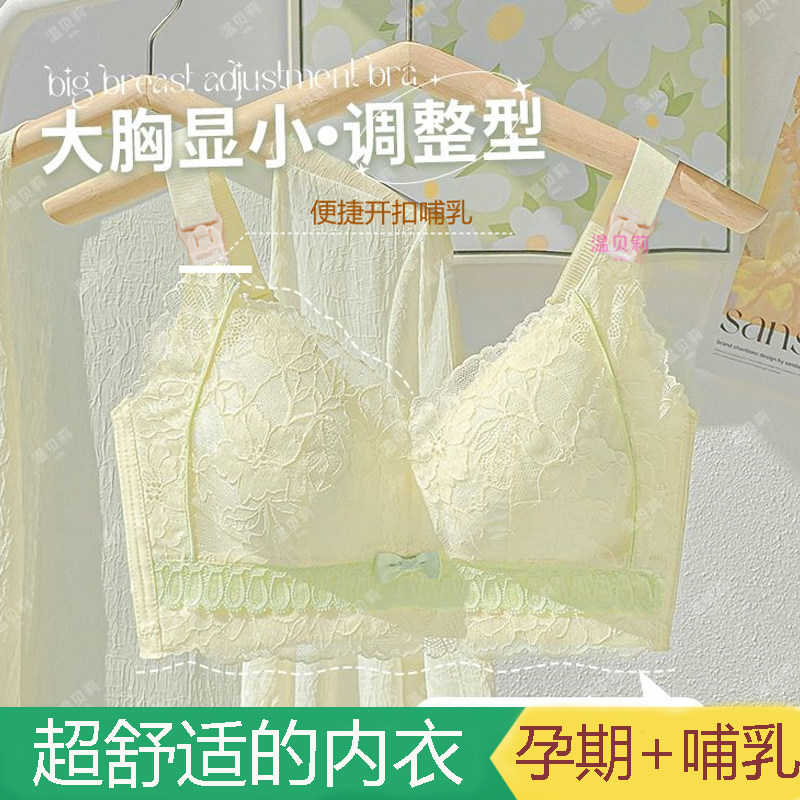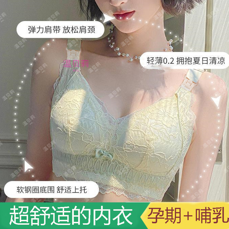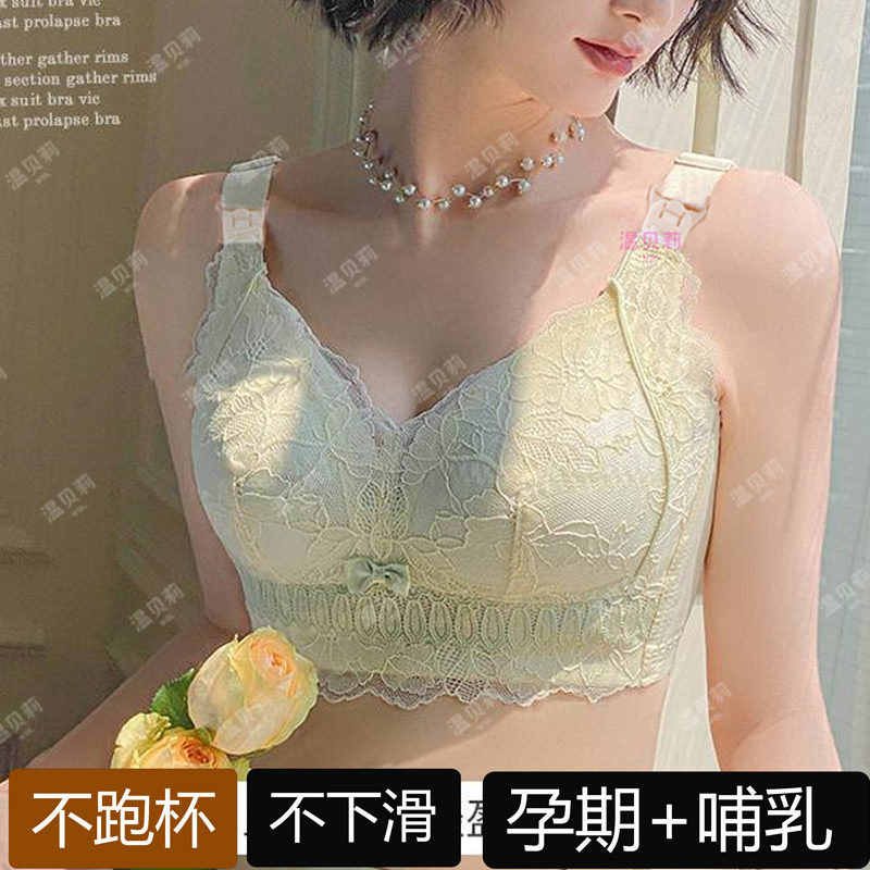 温贝莉孕妇哺乳内衣文胸透气聚拢防下垂蕾丝薄款喂奶罩大胸显小