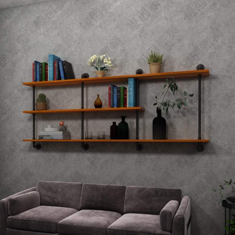 创意美式墙上壁挂花架 客厅卧室家用书架 复古工业风铁艺水管架