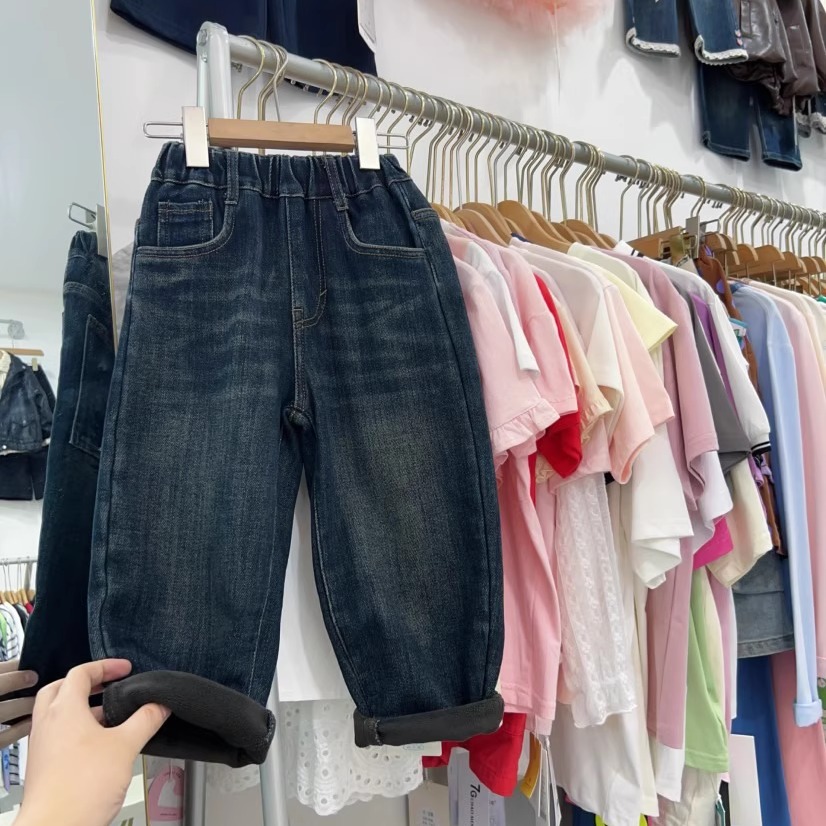 男童加绒牛仔裤冬季男孩加厚保暖休闲裤儿童长裤冬装一体绒裤子潮