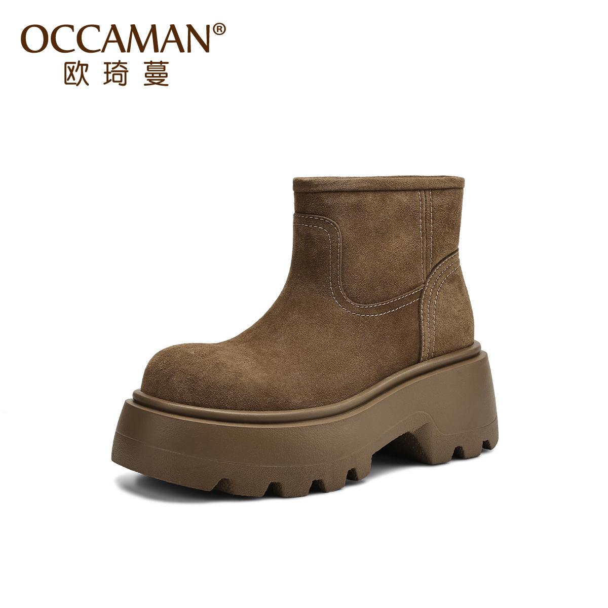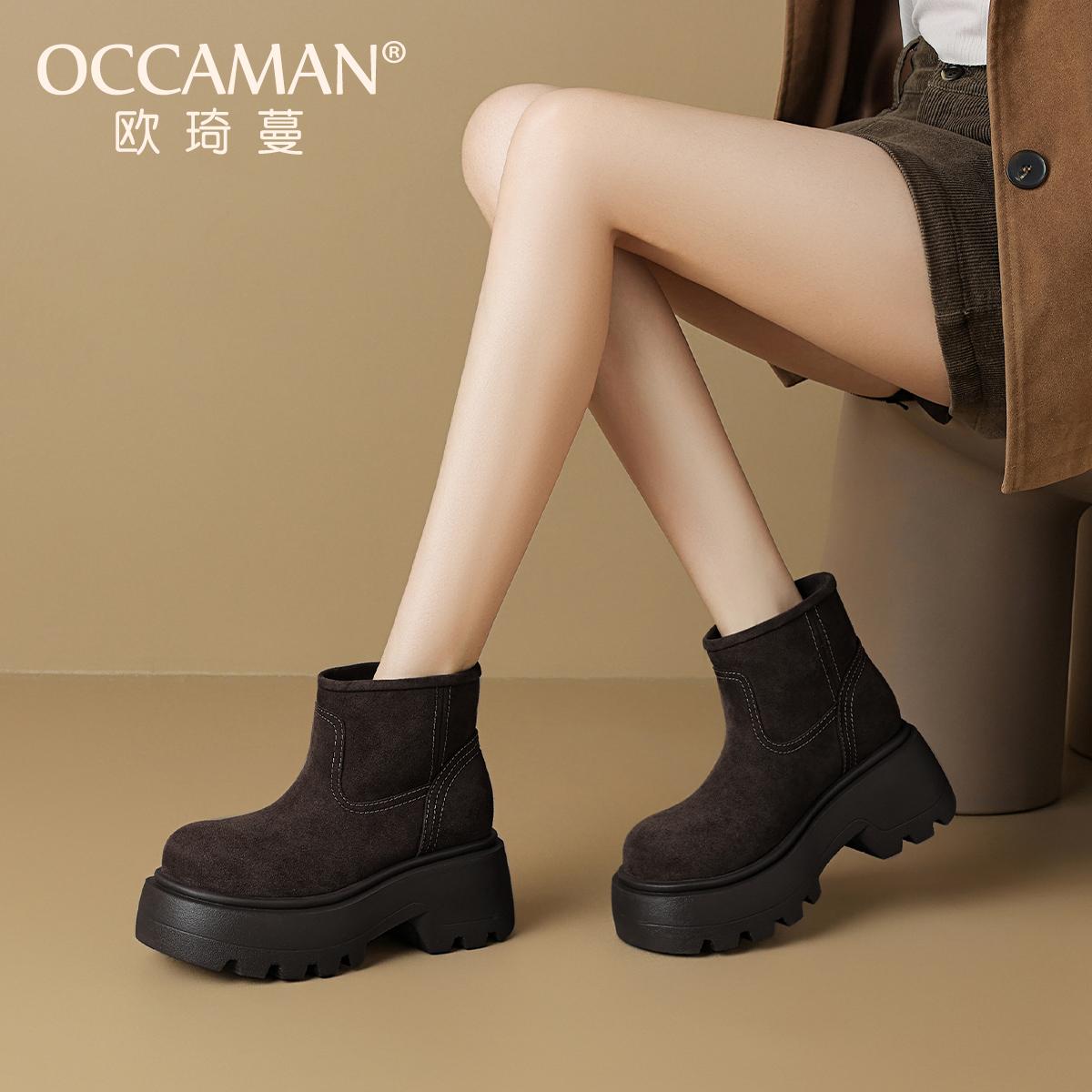 欧琦蔓磨砂雪地靴厚底增高松糕马丁靴600G绒加厚保暖秋冬新款女鞋
