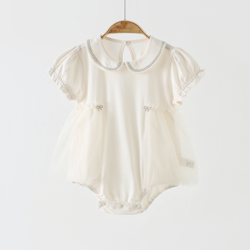 婴儿三角包屁衣夏季薄款珍珠提花女宝宝泡泡短袖哈衣新生儿连体衣