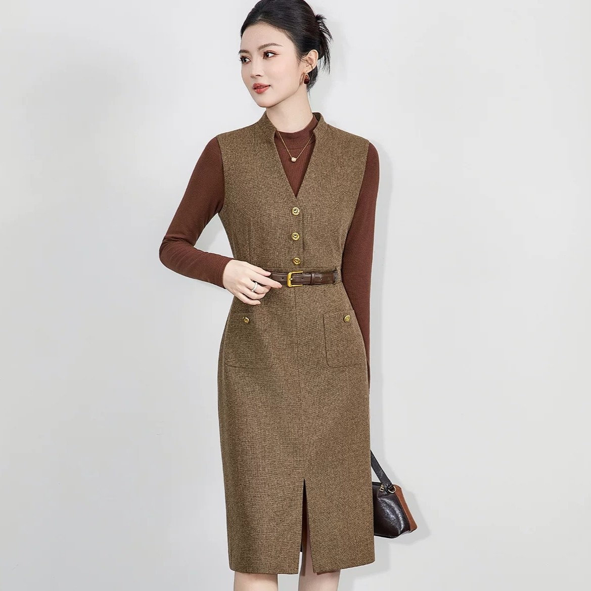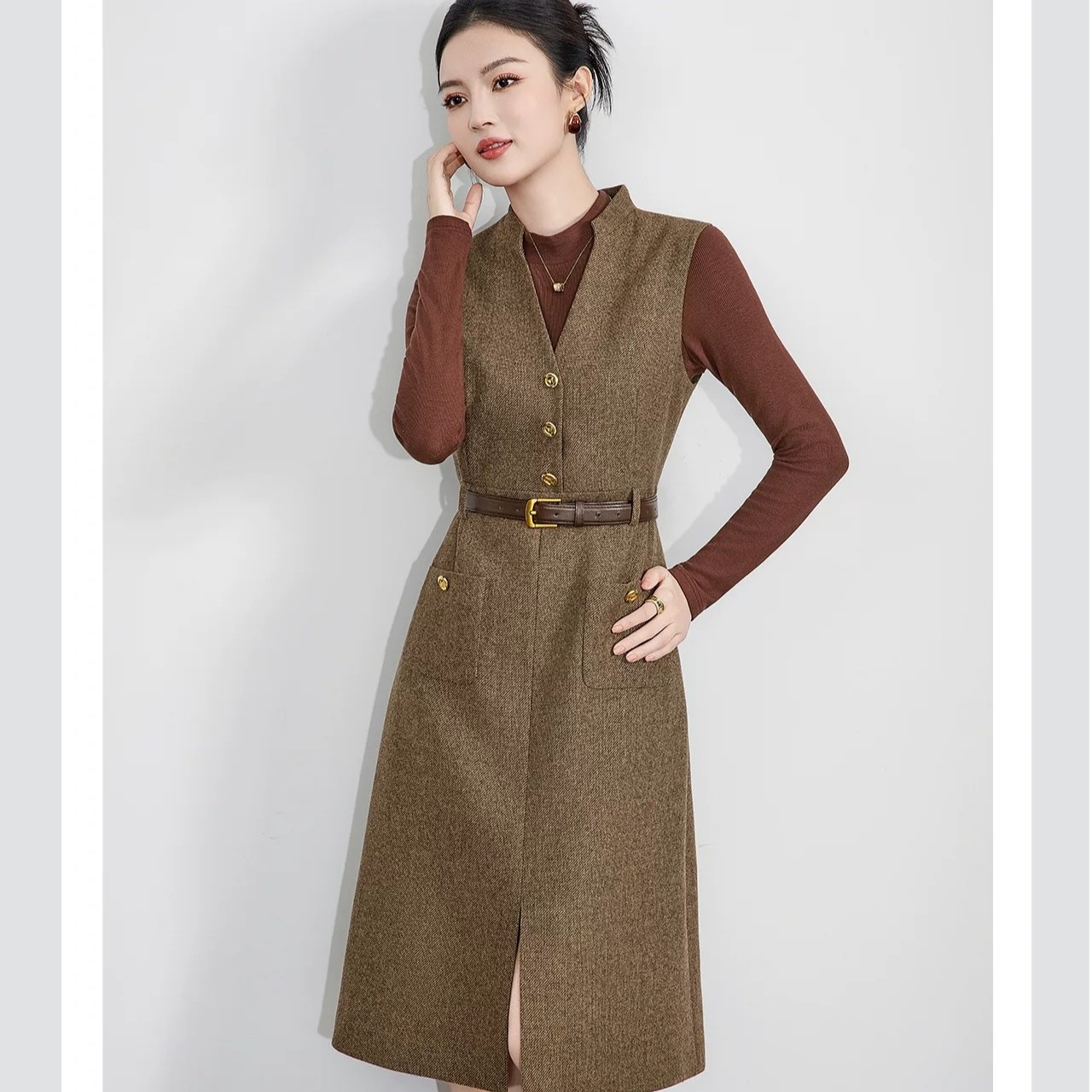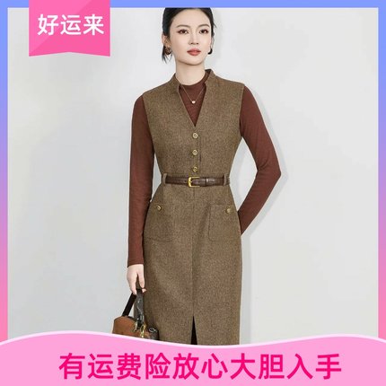 WLZD高贵气质南油高货编织羊毛混纺呢背心裙女秋冬打底无袖连衣裙