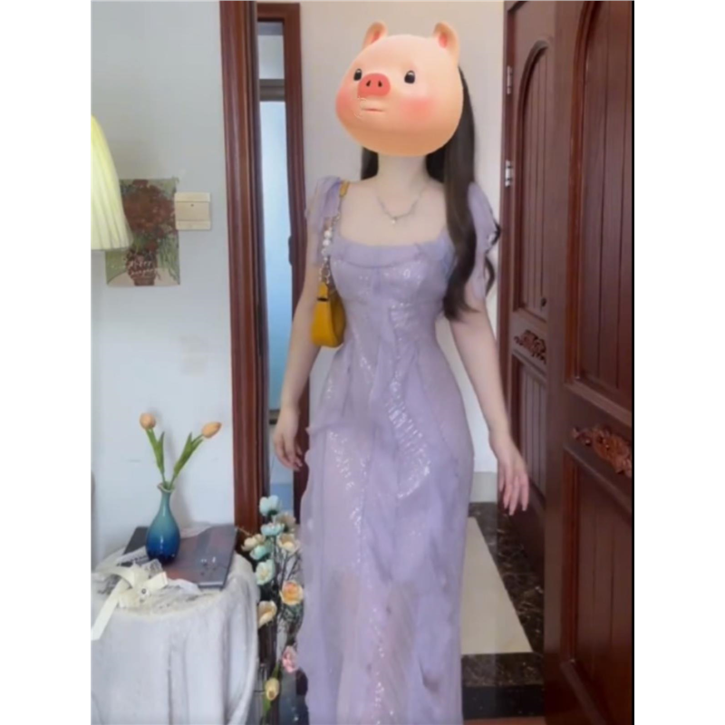 高端精致紫色亮片宴会礼服裙女夏新款法式气质名媛绝美收腰连衣裙