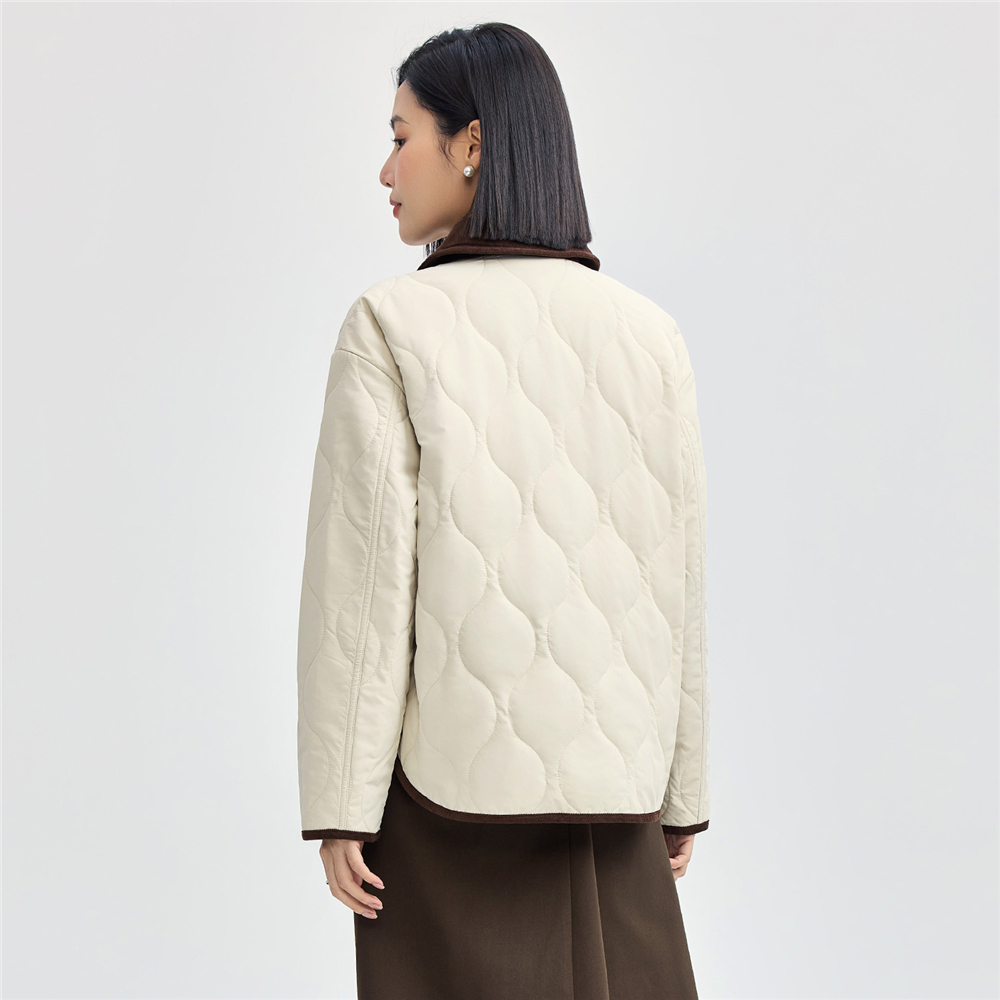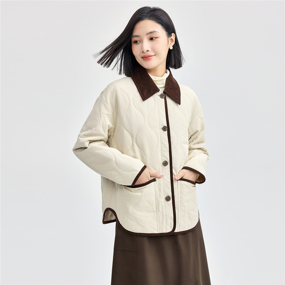 佐丹奴小香风外套女新款夹棉保暖灯芯绒拼接撞色翻领棉衣05374710