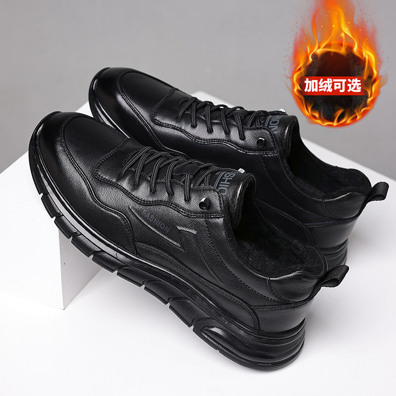 冬季大码男鞋加宽加肥真皮运动鞋黑色加绒鞋子大号男士休闲皮鞋男