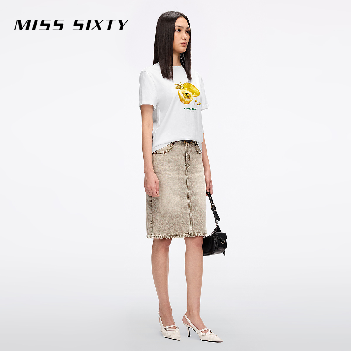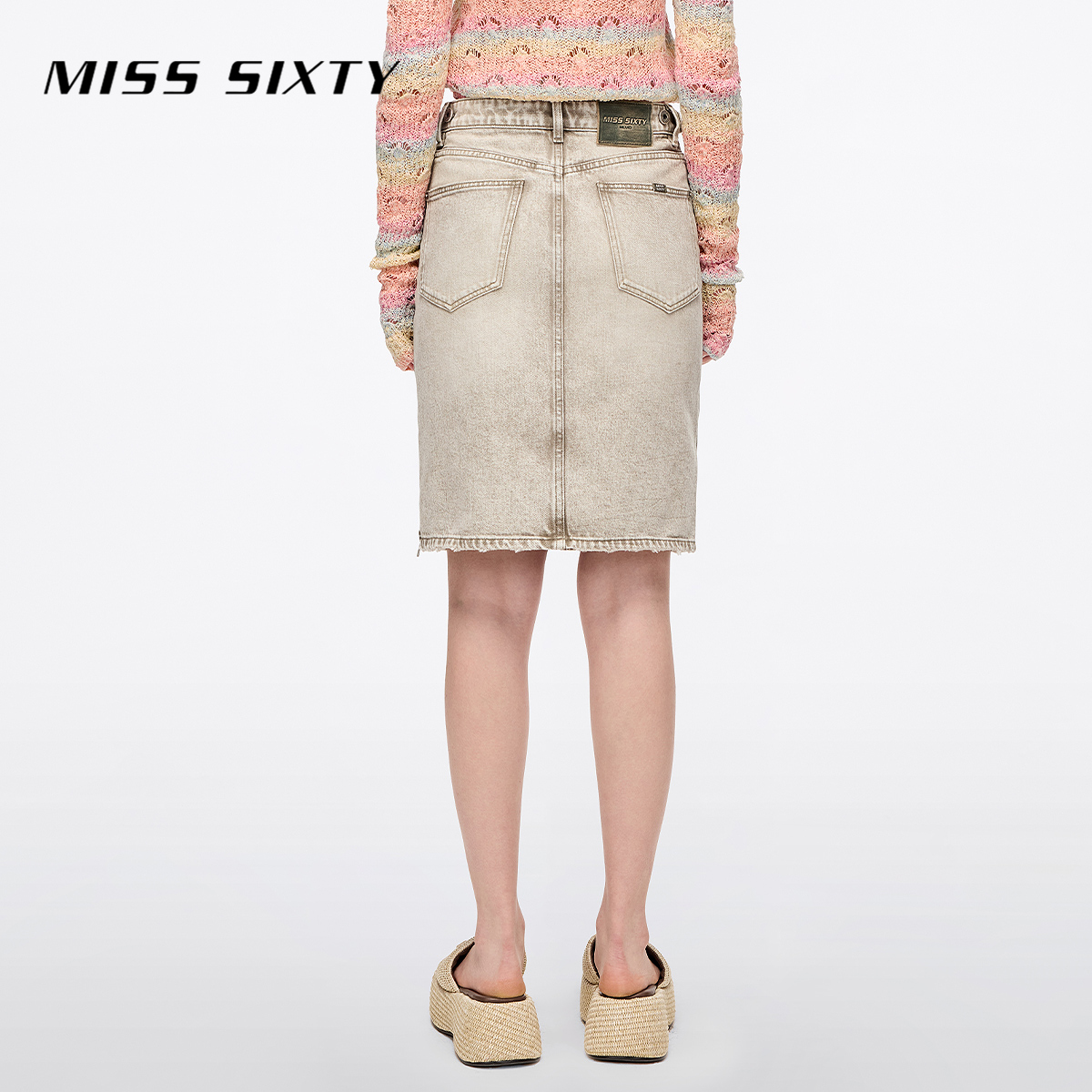 Miss Sixty2025夏季新款牛仔半身裙女侧拉链开衩不规则磨破中裙