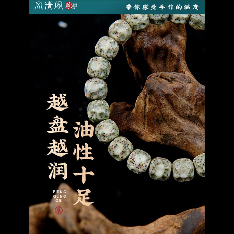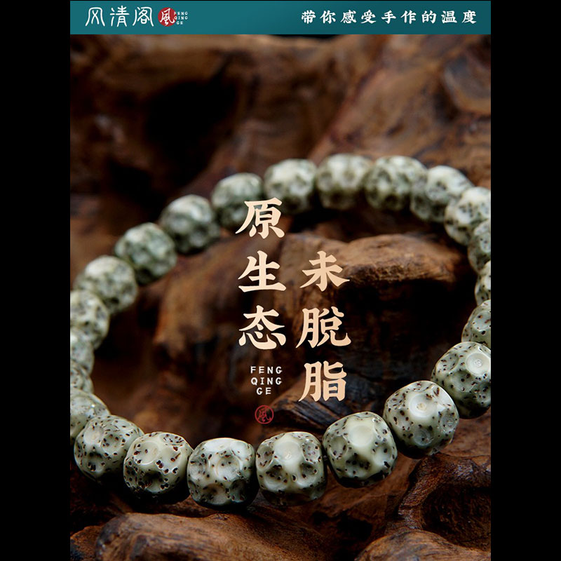 真海南石玉料无相星月菩提手串原生态阴皮绿高密玉化留白佛珠正品
