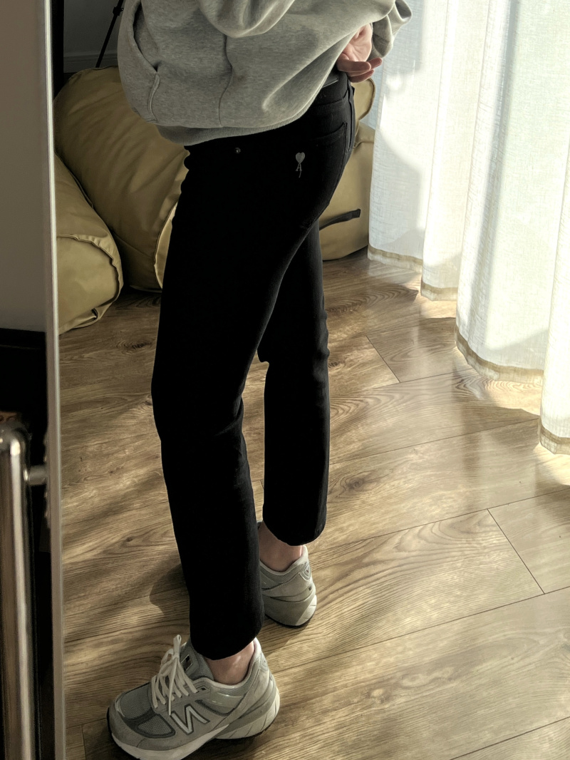 高腰烟管裤女修身简约九分小直筒水洗灰黑2024春韩版靴裤