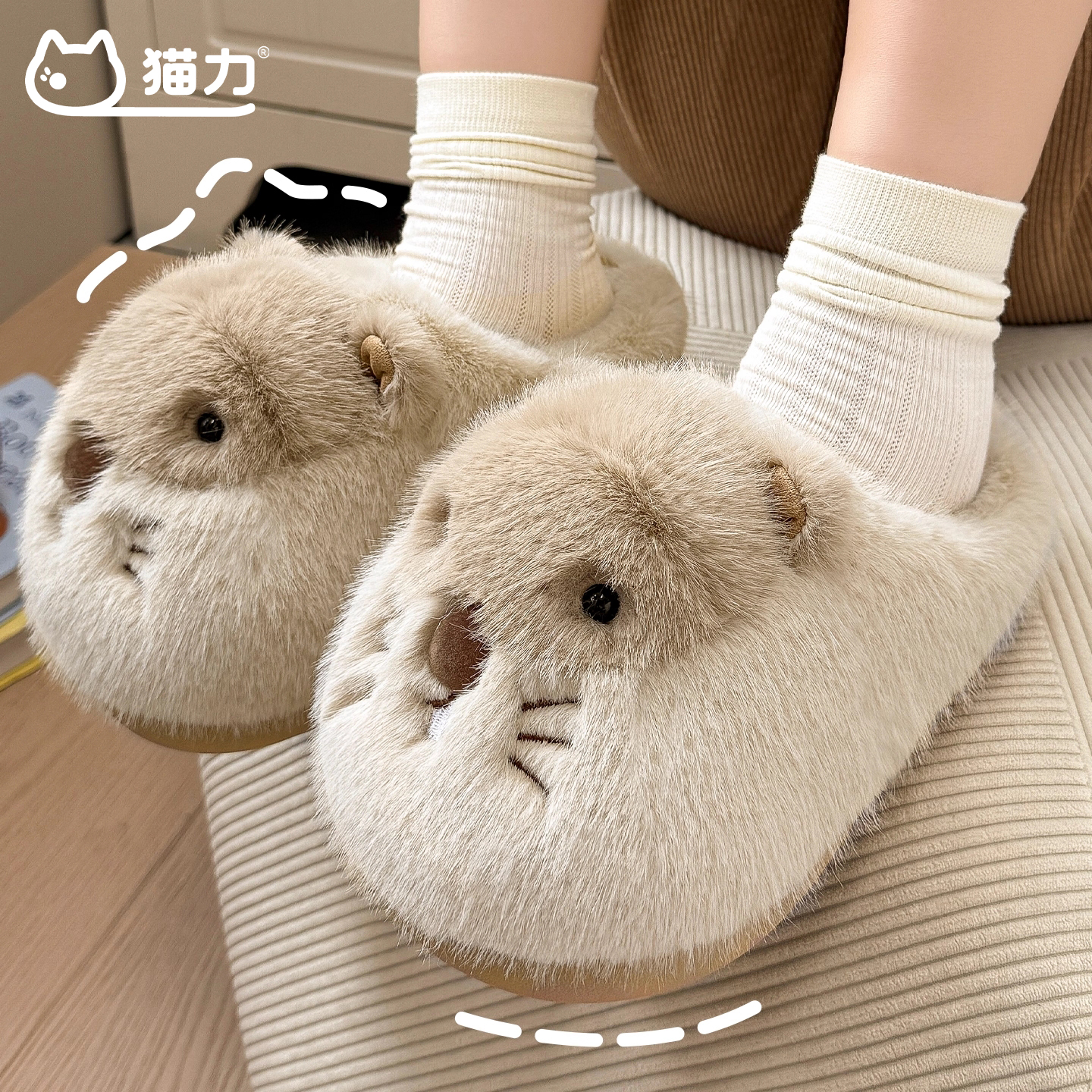 可爱土拨鼠棉拖女士秋冬季