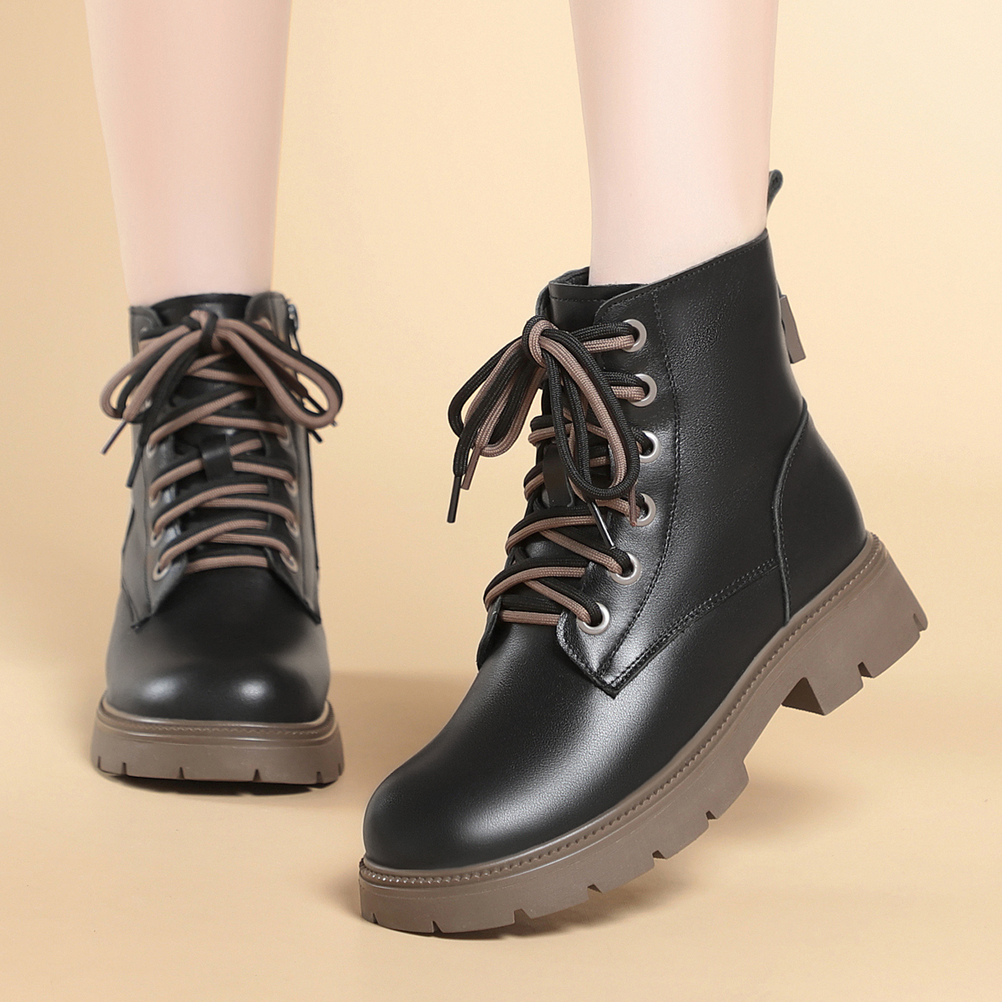 真皮马丁靴女款皮鞋冬季加厚绒女鞋羊毛短靴子厚底棉鞋防水雪地靴