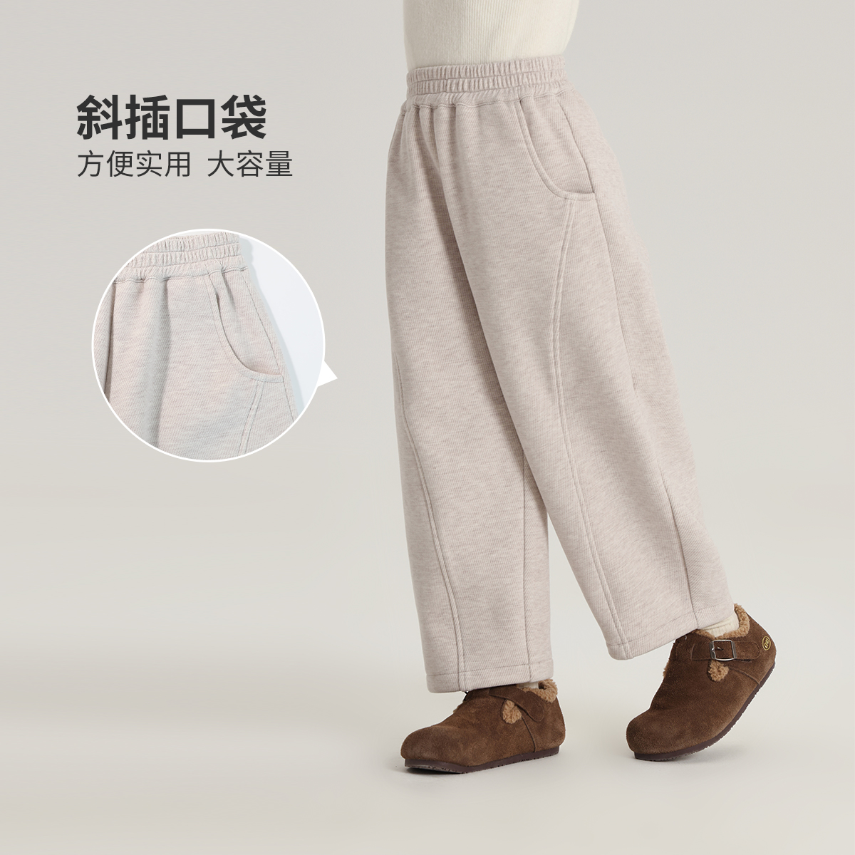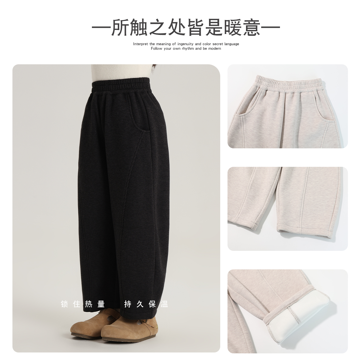 布丁哈鲁童装加绒加厚儿童卫裤25冬季新款男女童一体绒保暖休闲裤