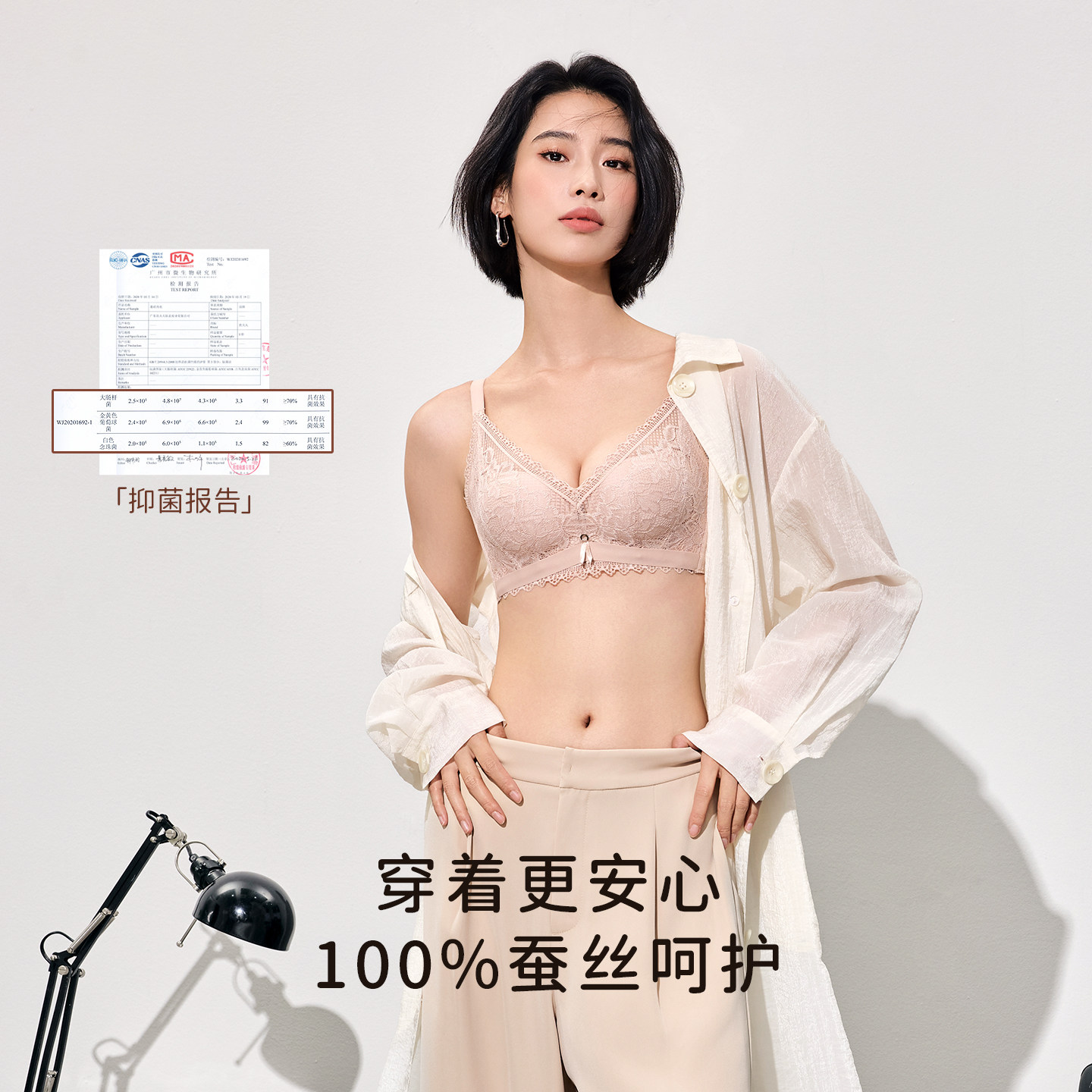 贵夫人蚕丝抗菌蕾丝内衣调整聚拢