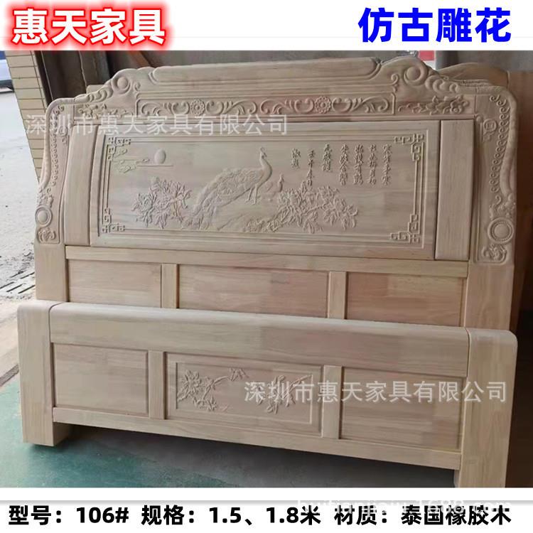 中式仿古雕花实木床白茬1.5米明清中式床白胚1.8米实木雕花白坯床