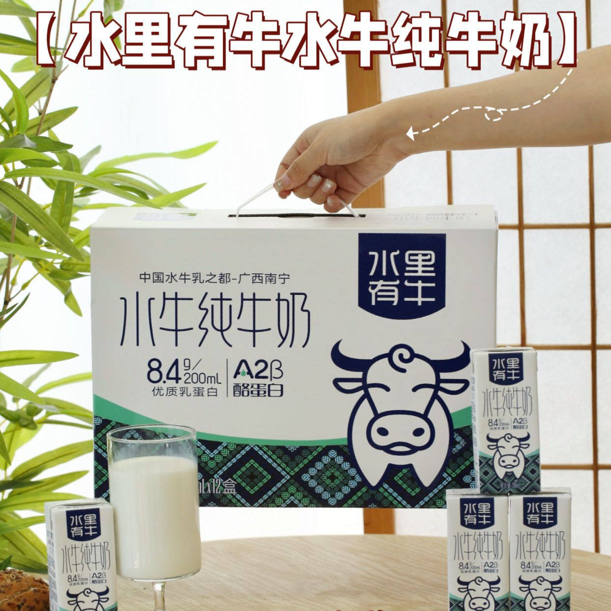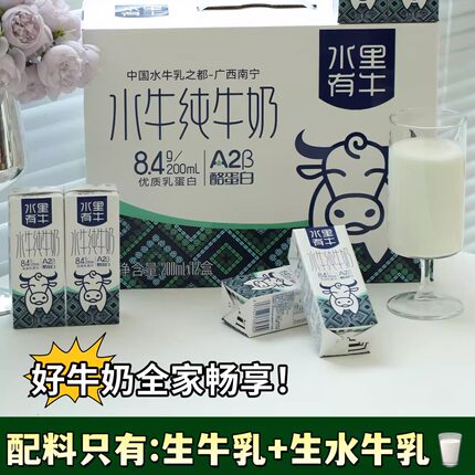 水里有牛水牛纯牛奶200ml*12盒A2β-酪蛋白儿童学生成人营养早餐