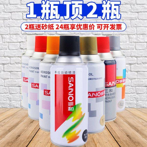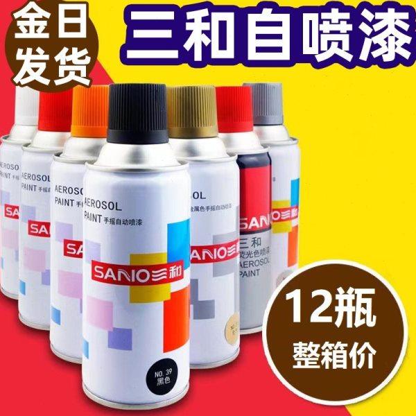整箱12瓶三和自动喷漆手摇喷漆金属防锈漆汽车家用黑色白色金银色