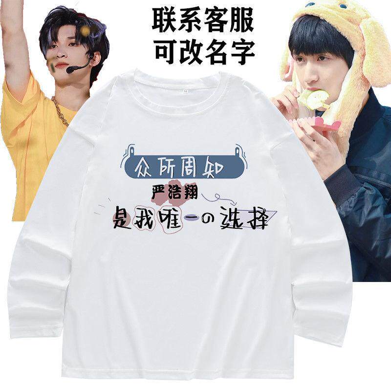 严浩翔同款衣服tnt时代少年团上衣印花长袖男女宽松打底衫T恤卫衣