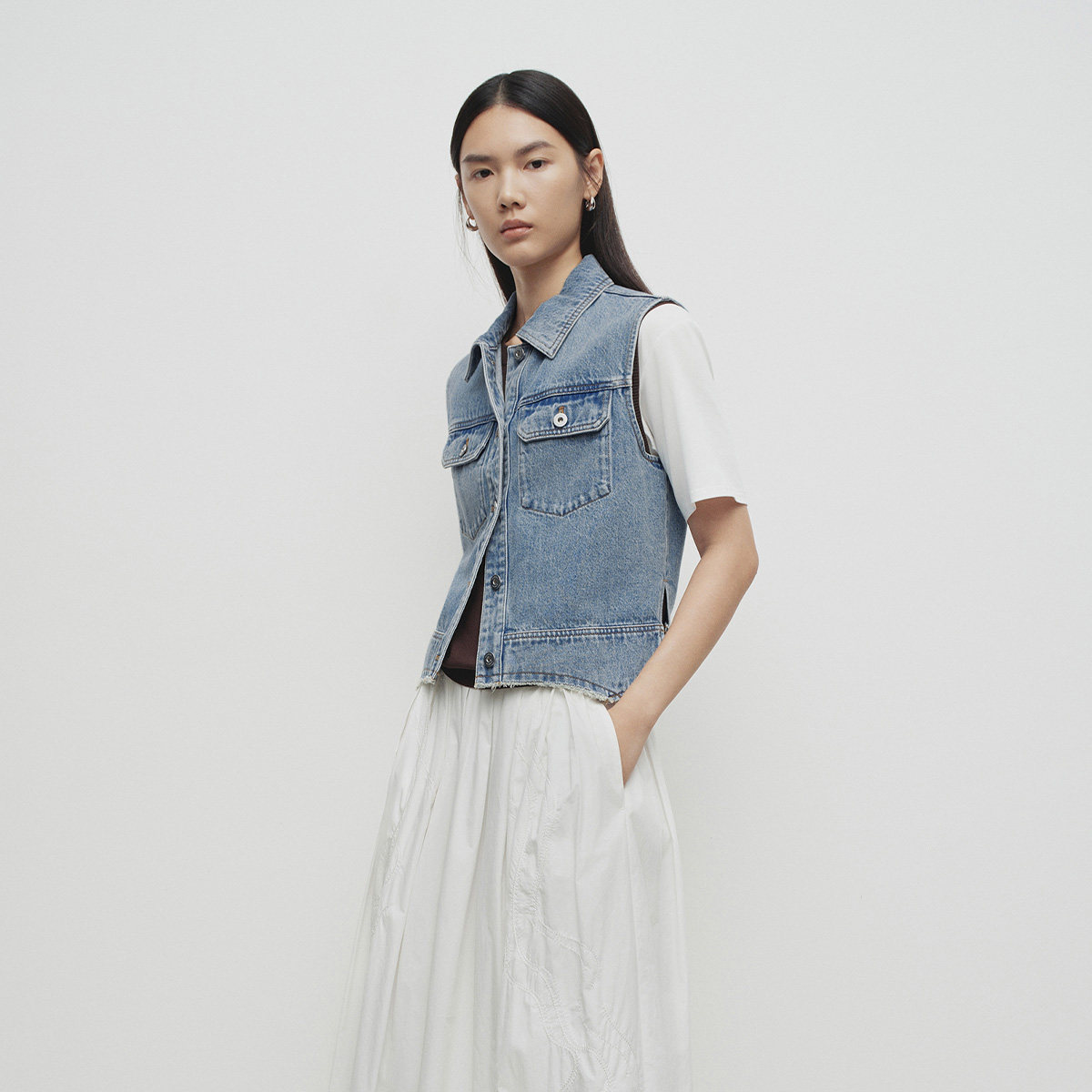 播商场同款复古牛仔马甲女春秋新款叠穿航海系上衣BDS1MD1545