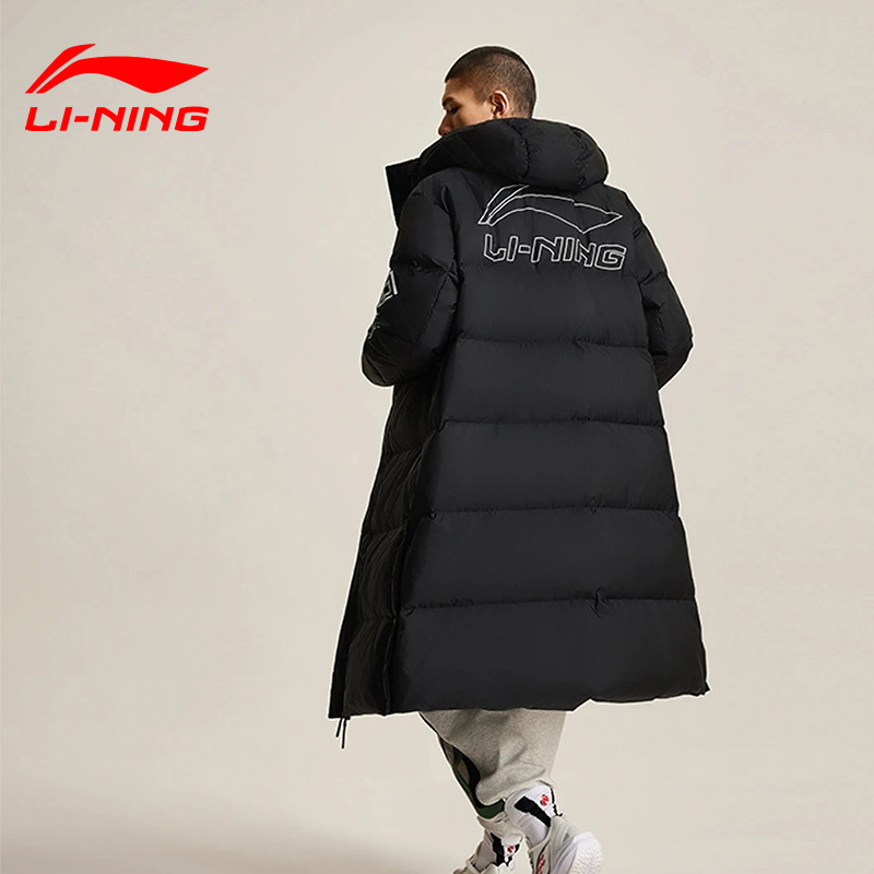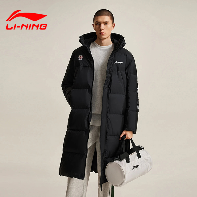 李宁羽绒服男士长款运动外套CBA专业篮球系列冬季鸭绒连帽运动服