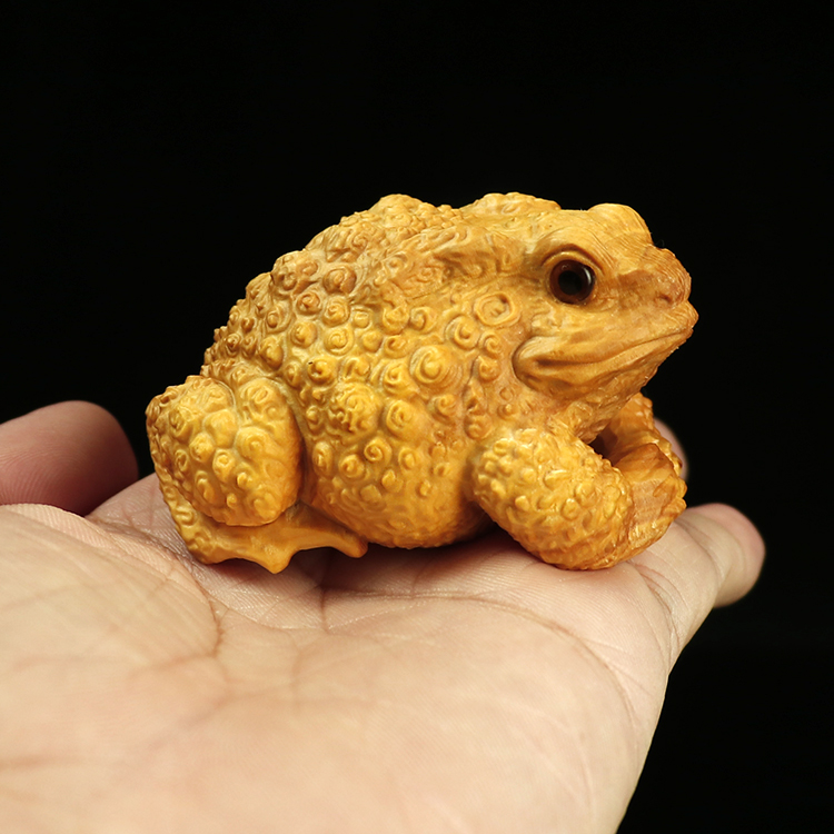 黄杨木雕文玩金蟾手把件木质雕刻工艺客厅摆件家居饰品