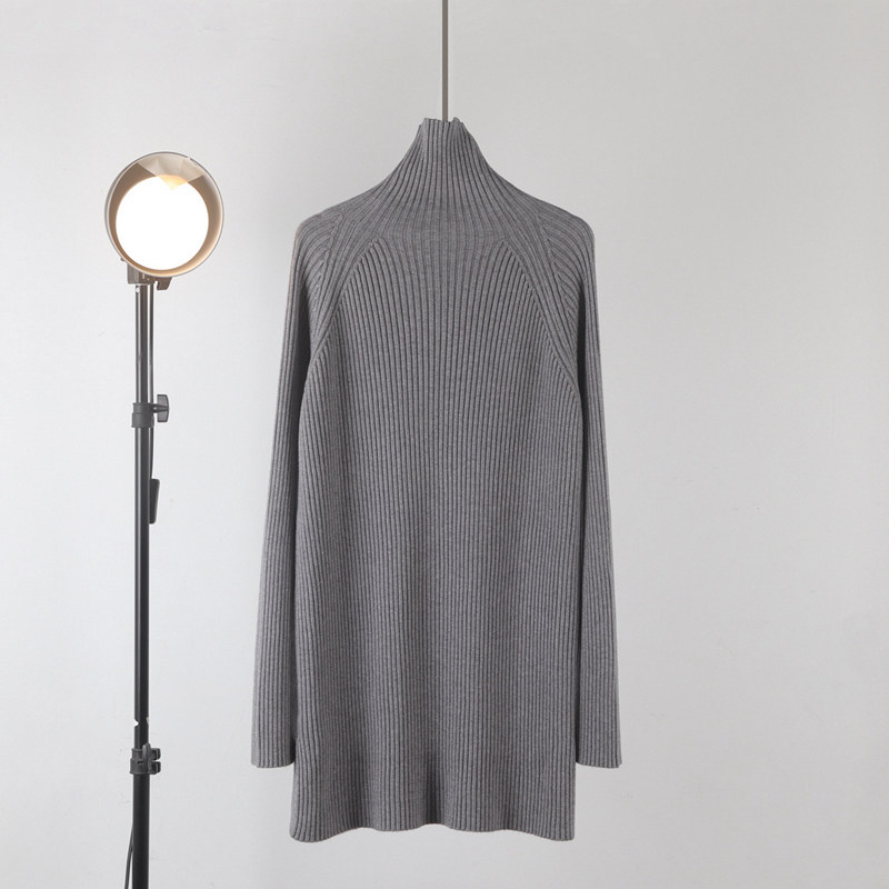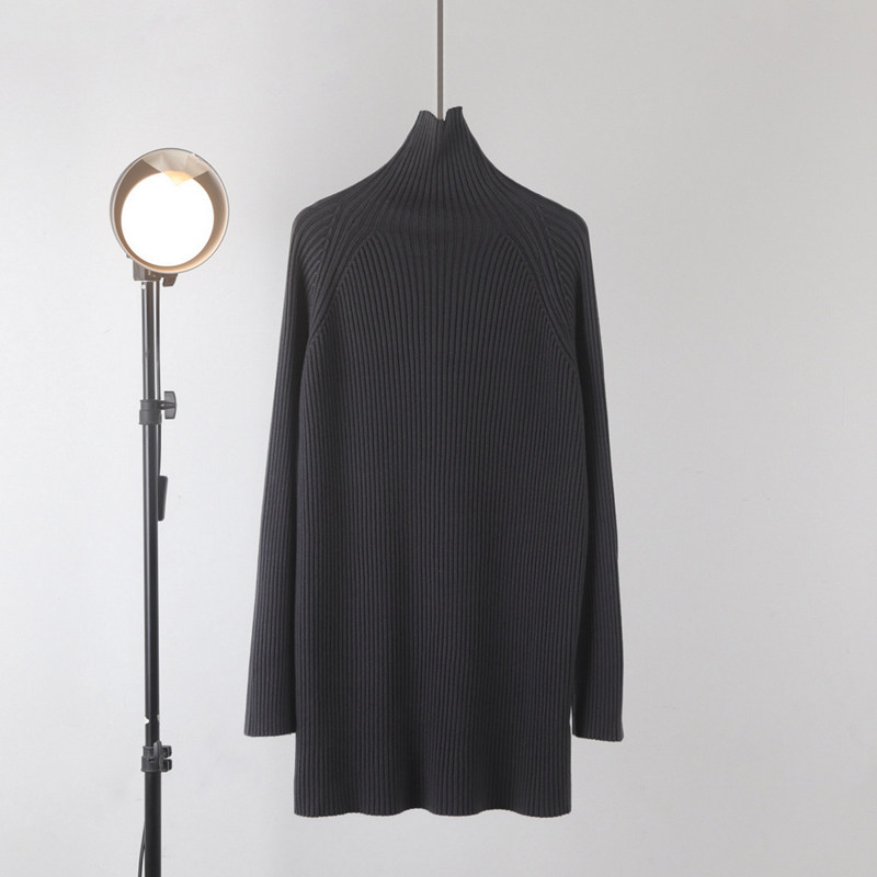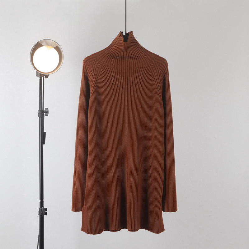 秋冬新款中长款大码针织打底衫女厚款宽松大版型内搭半高领毛衣潮