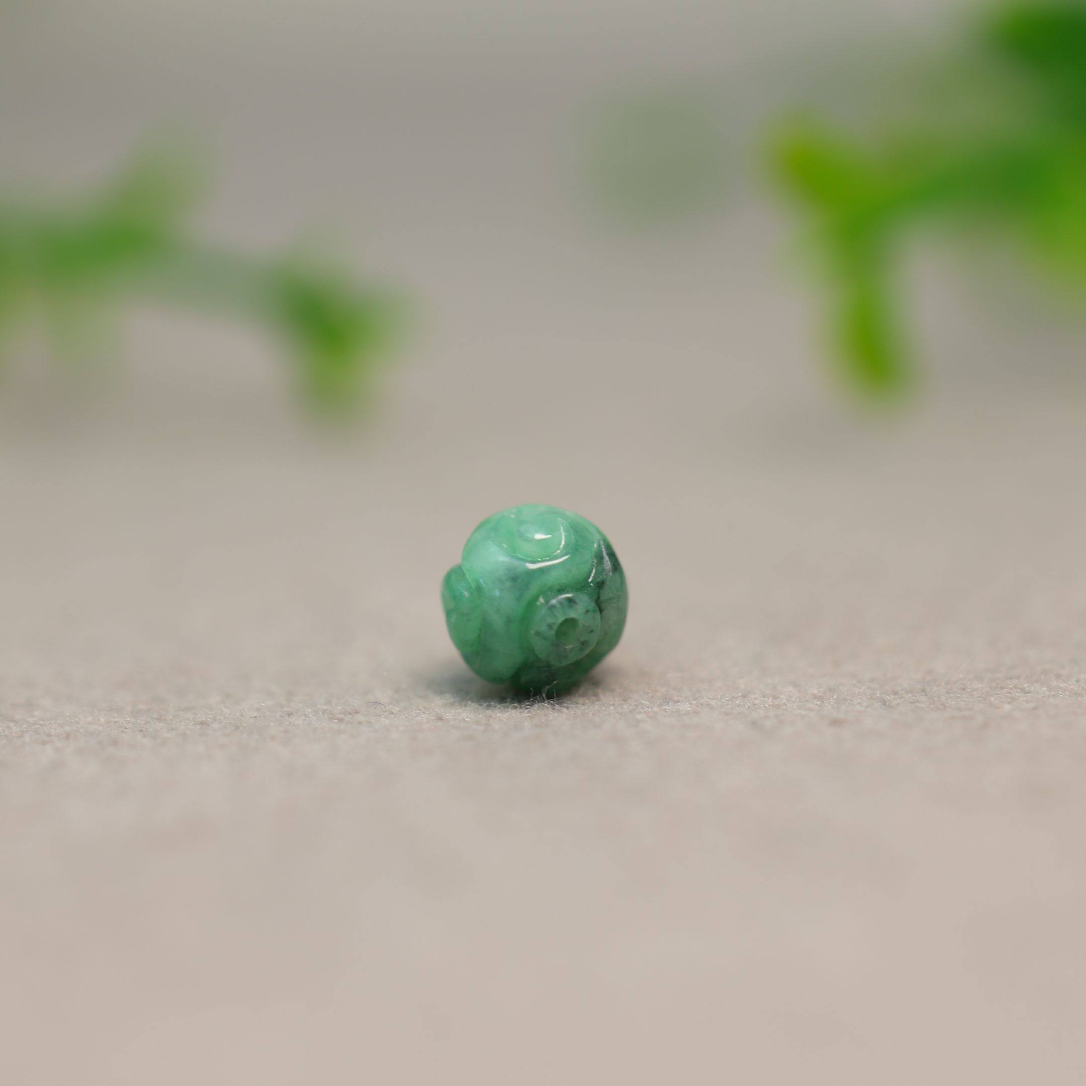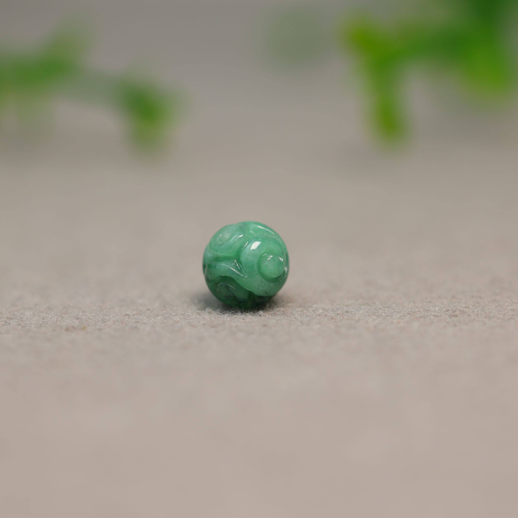 缅甸天然A货翡翠龙纹雕花圆珠