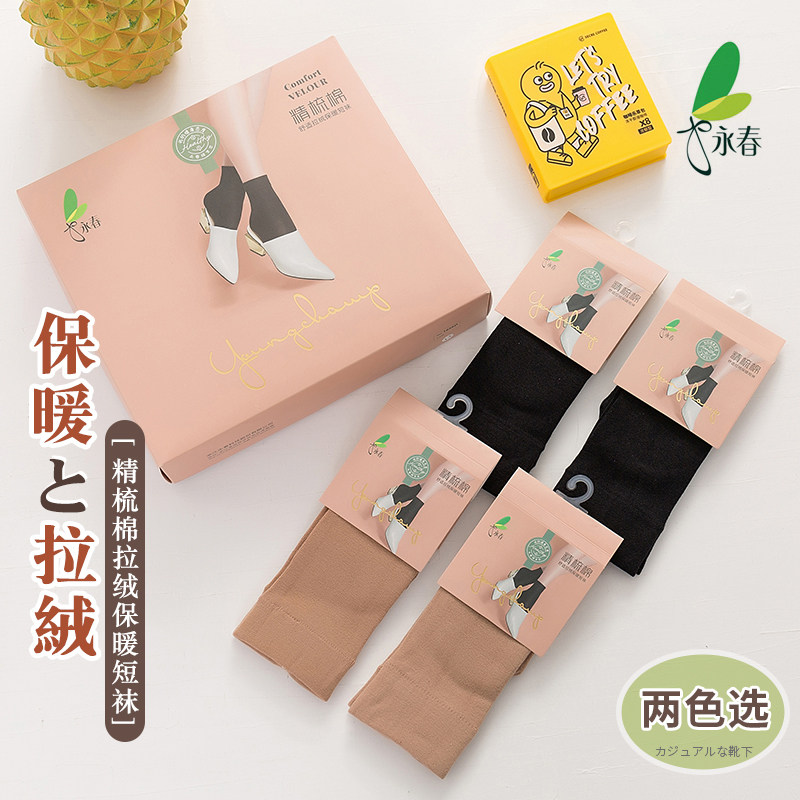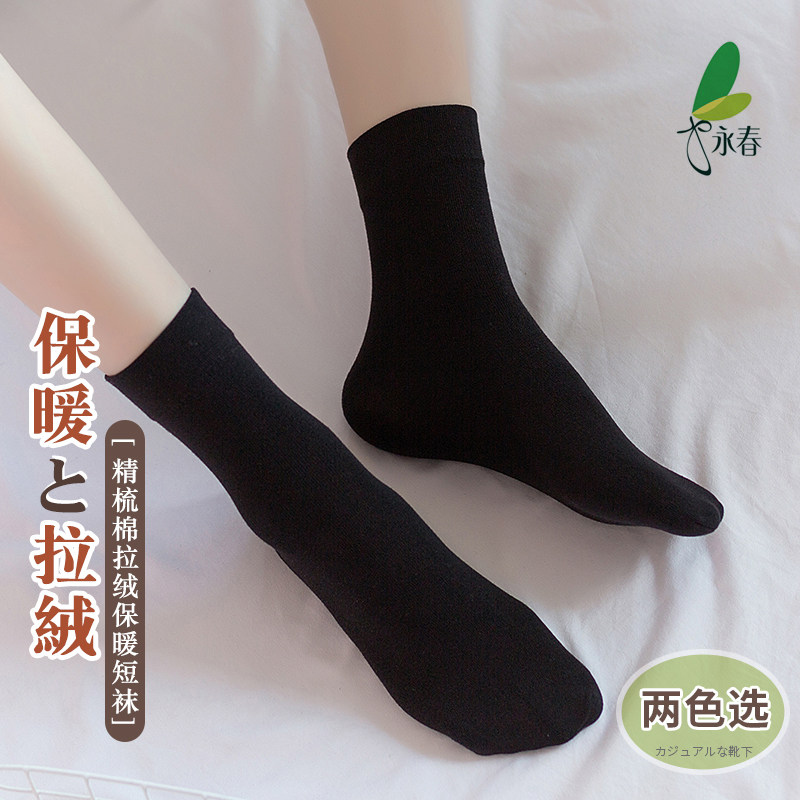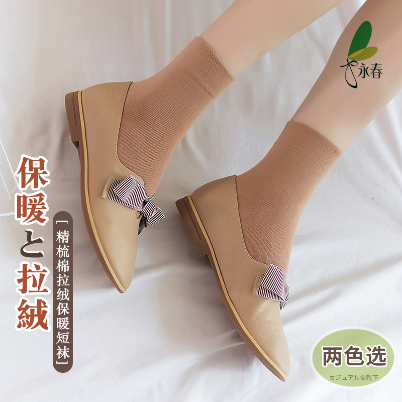 6双永春短袜女秋冬肉色薄绒保暖中筒袜精梳棉拉绒舒适短筒厚丝袜