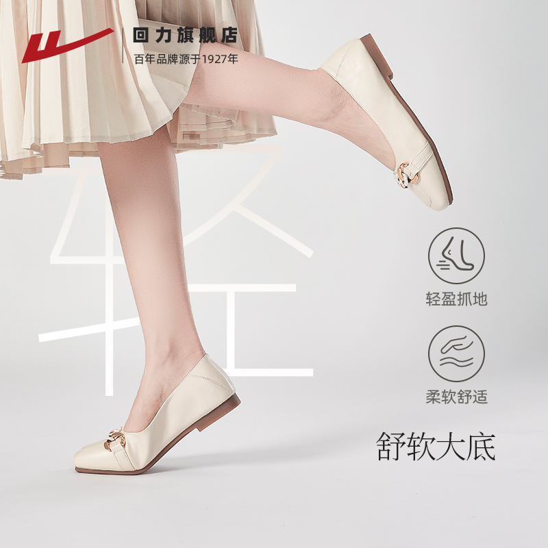 回力女鞋单鞋2026春夏新款妈妈鞋浅口配裙子小皮鞋软底豆豆鞋平底