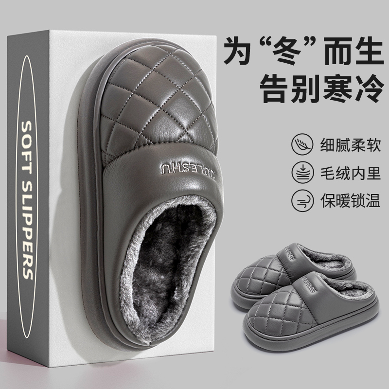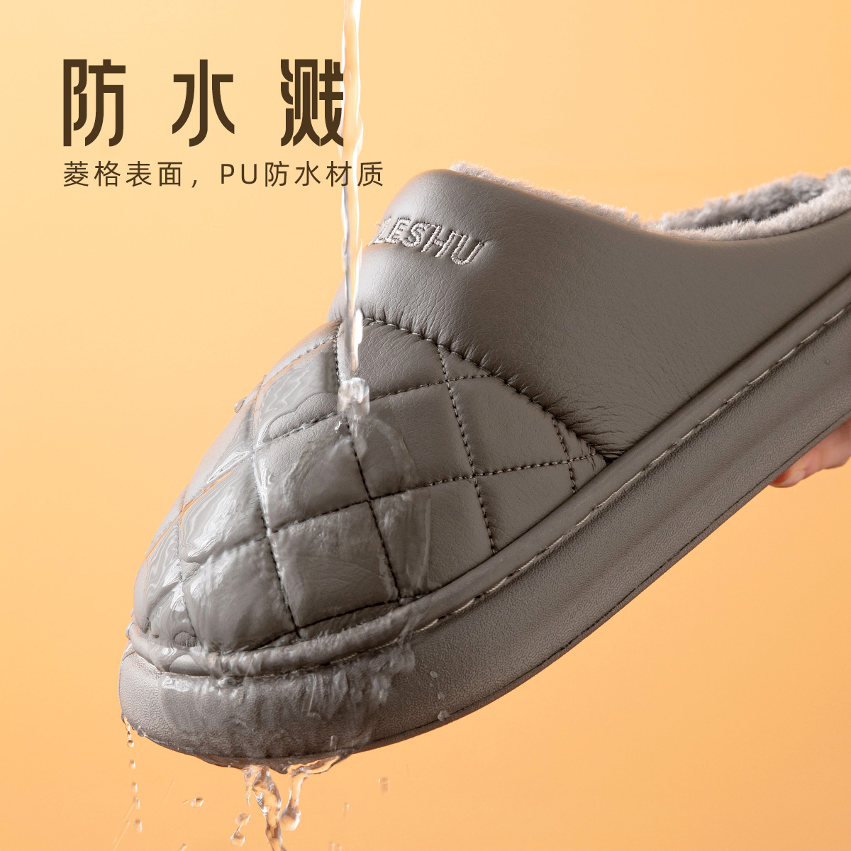 中老人防水棉拖鞋男士秋冬季家居室内2025新款加绒外穿保暖棉拖女