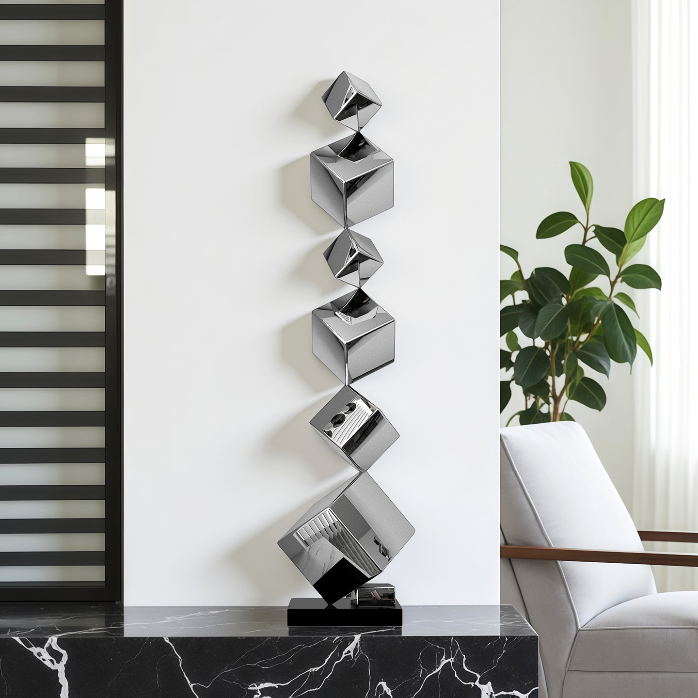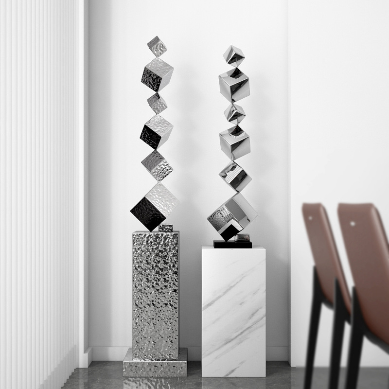 简约轻奢不锈钢雕塑落地样板间客厅软装装饰品酒店走廊艺术大