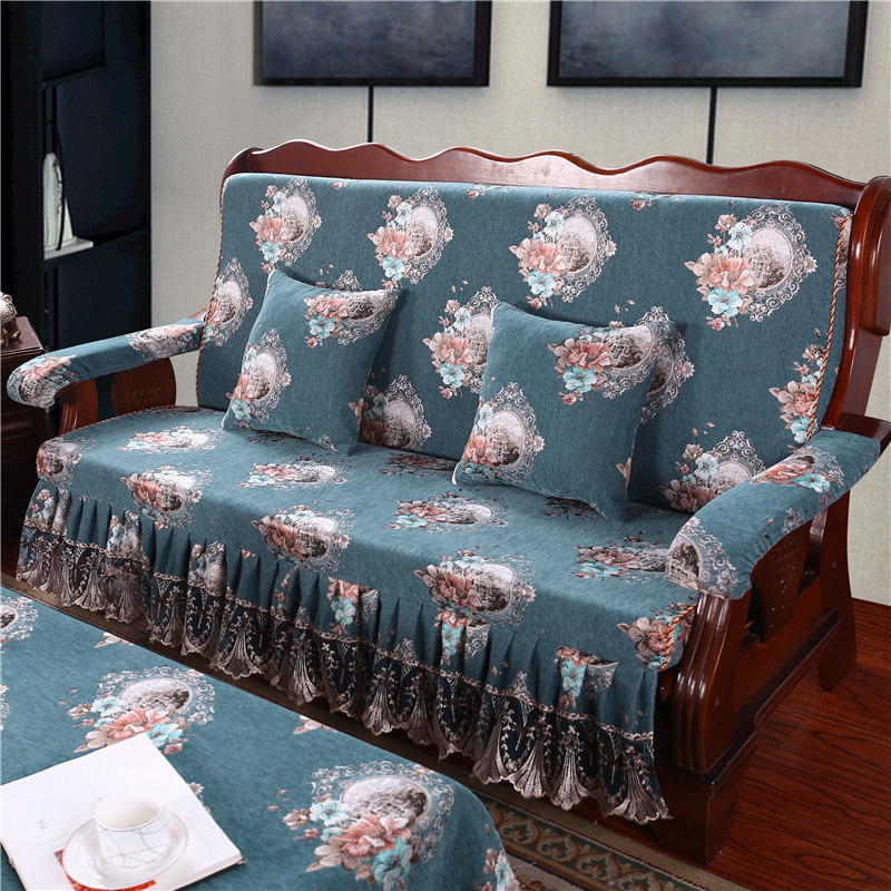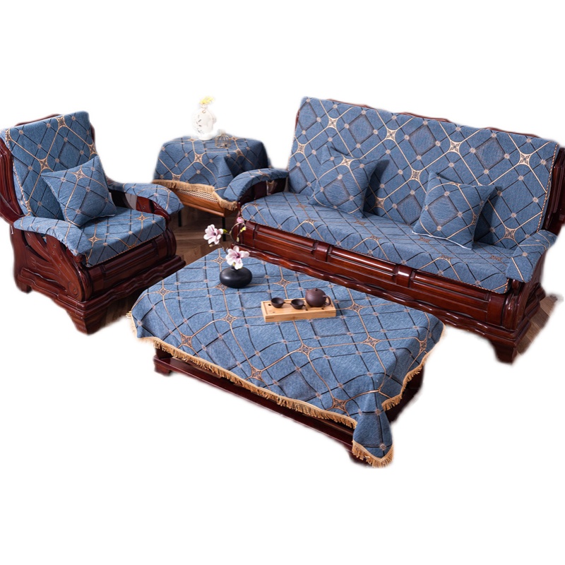 防滑设计简约实木沙发垫带靠背