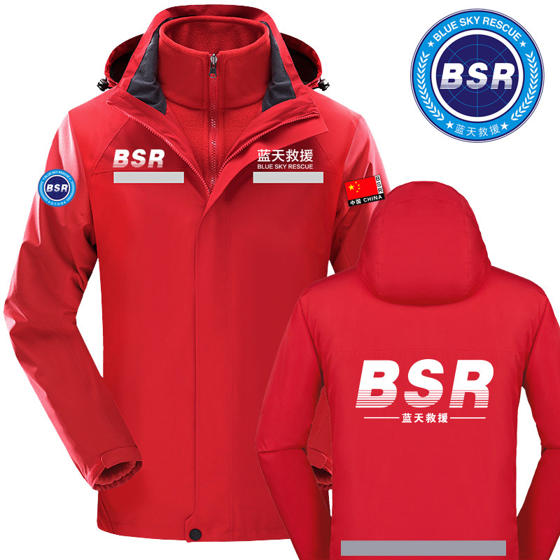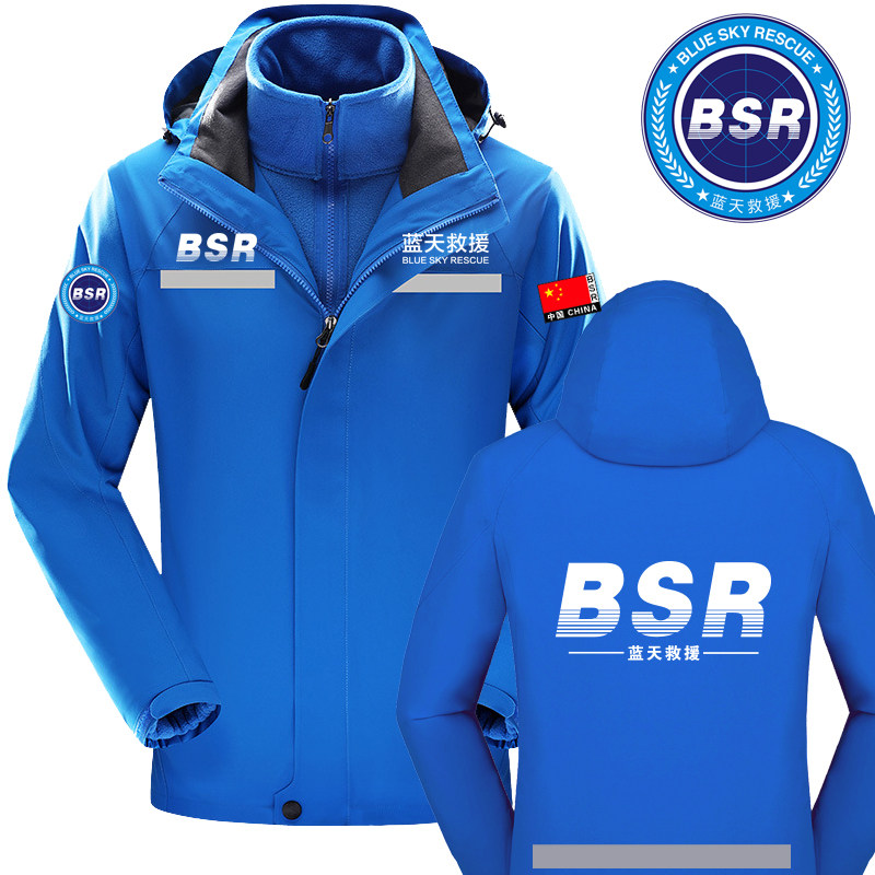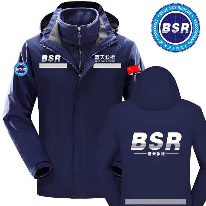 蓝天救援队服冲锋衣冬季反光应急救援工作服外套工服工衣定制LOGO